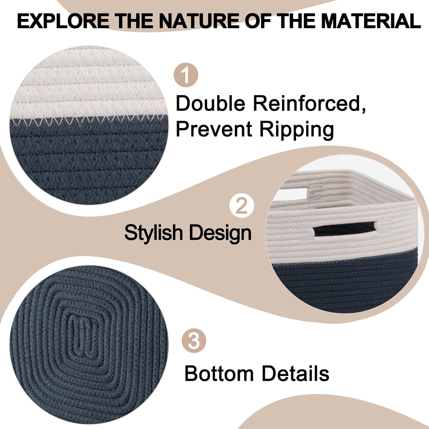- Safe, Natural Cotton Storage Basket: Our basket is made of the highest quality materials on the market, very sturdy, and 100% safe. So when pets or children get close to them, you don't have to worry at all