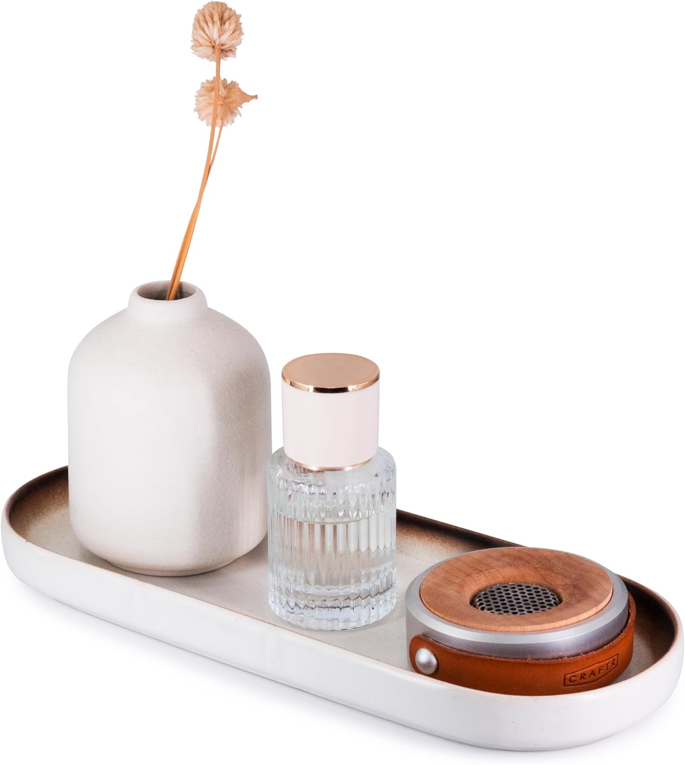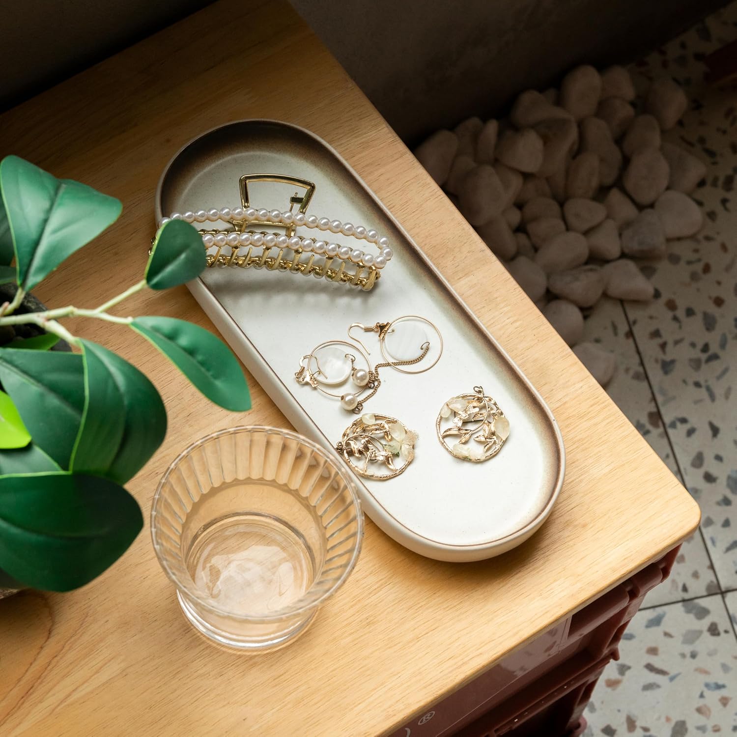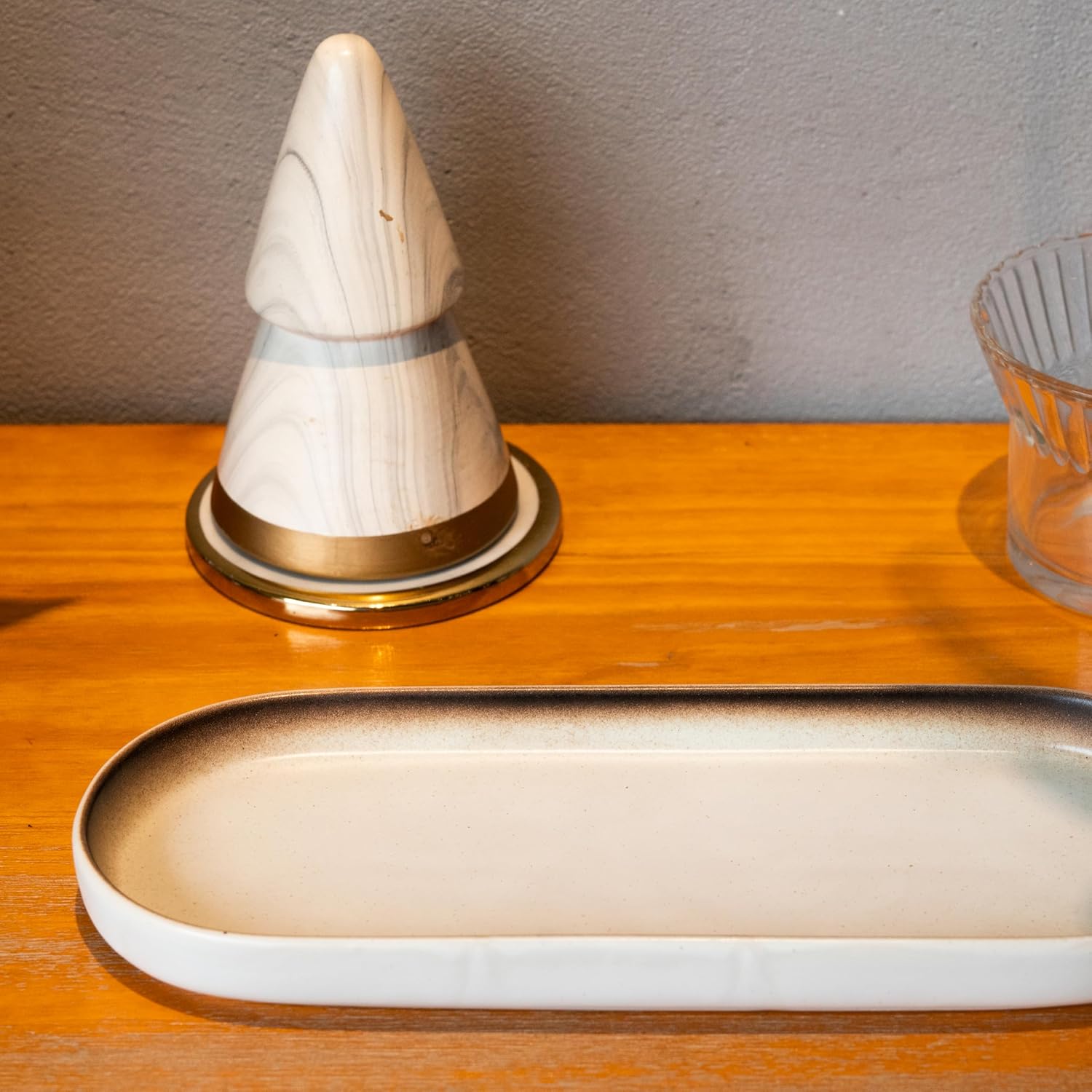 - Versatile & Practical: Measuring 10" x 4", this tray offers ample storage space for various needs. It can store jewelry and decorations in your room, toiletries in the bathroom, and a soap dispenser at the kitchen sink. It's also suitable for use in the living room, office, and other settings, making it a versatile organizer for any space in your home. Made from safe ceramic material, the tray can also be used as a dinner plate, adding a touch of sophistication to any space in your home.