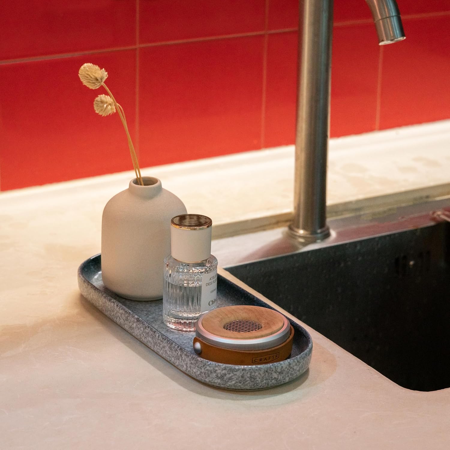 - Selected Material: Our tray is crafted from high-quality clay and fired at high temperatures using modern technology, resulting in a thick, delicate surface that is sturdy and durable. The unglazed bottom provides excellent anti-slip properties. The tray is waterproof, high-temperature resistant, and retains its color, making it ideal for use in the bedroom, bathroom, or kitchen. The ceramic is easy to clean and can be rinsed directly and dishwasher safe, ensuring very low maintenance costs.