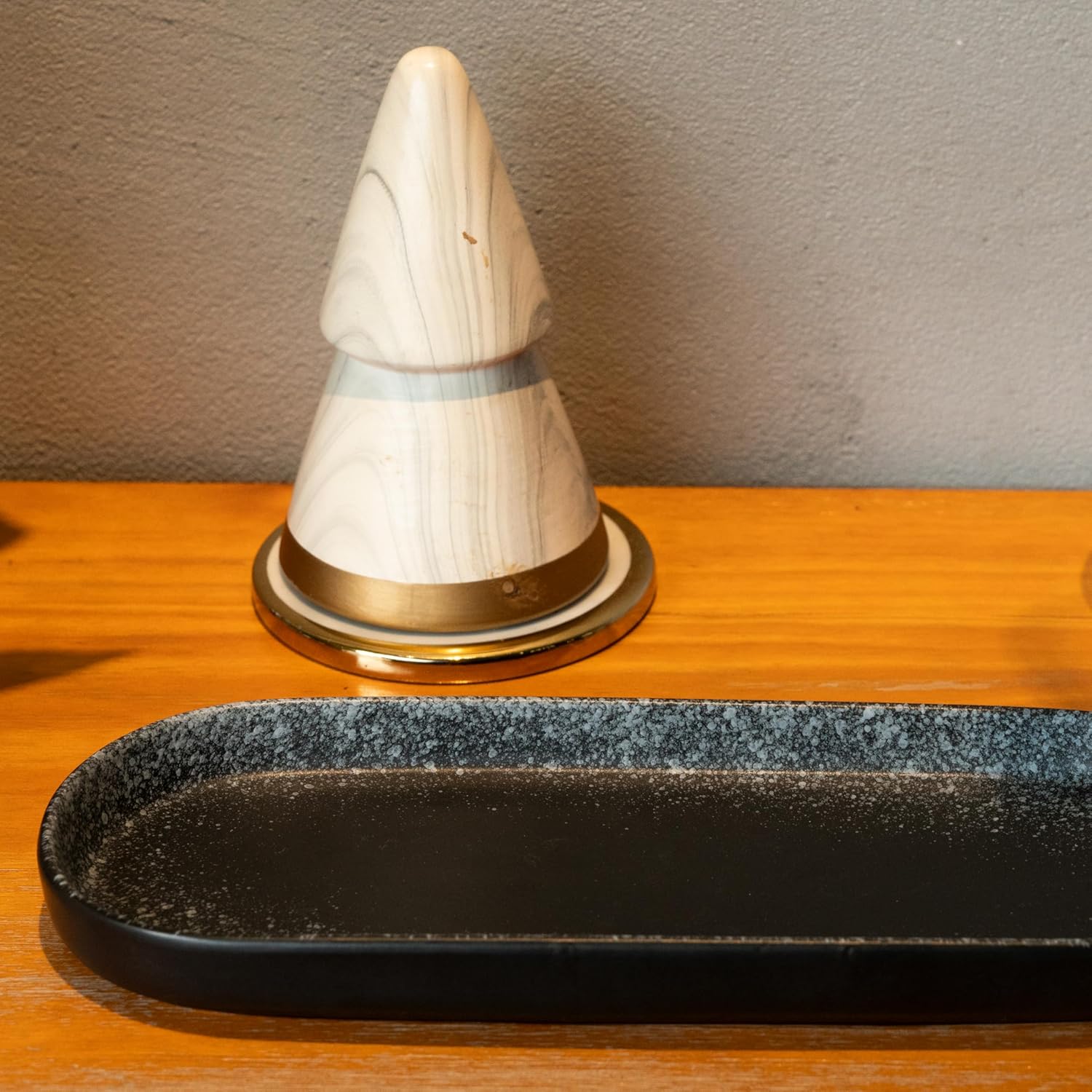 - Versatile & Practical: Measuring 10" x 4", this tray offers ample storage space for various needs. It can store jewelry and decorations in your room, toiletries in the bathroom, and a soap dispenser at the kitchen sink. It's also suitable for use in the living room, office, and other settings, making it a versatile organizer for any space in your home. Made from safe ceramic material, the tray can also be used as a dinner plate, adding a touch of sophistication to any space in your home.