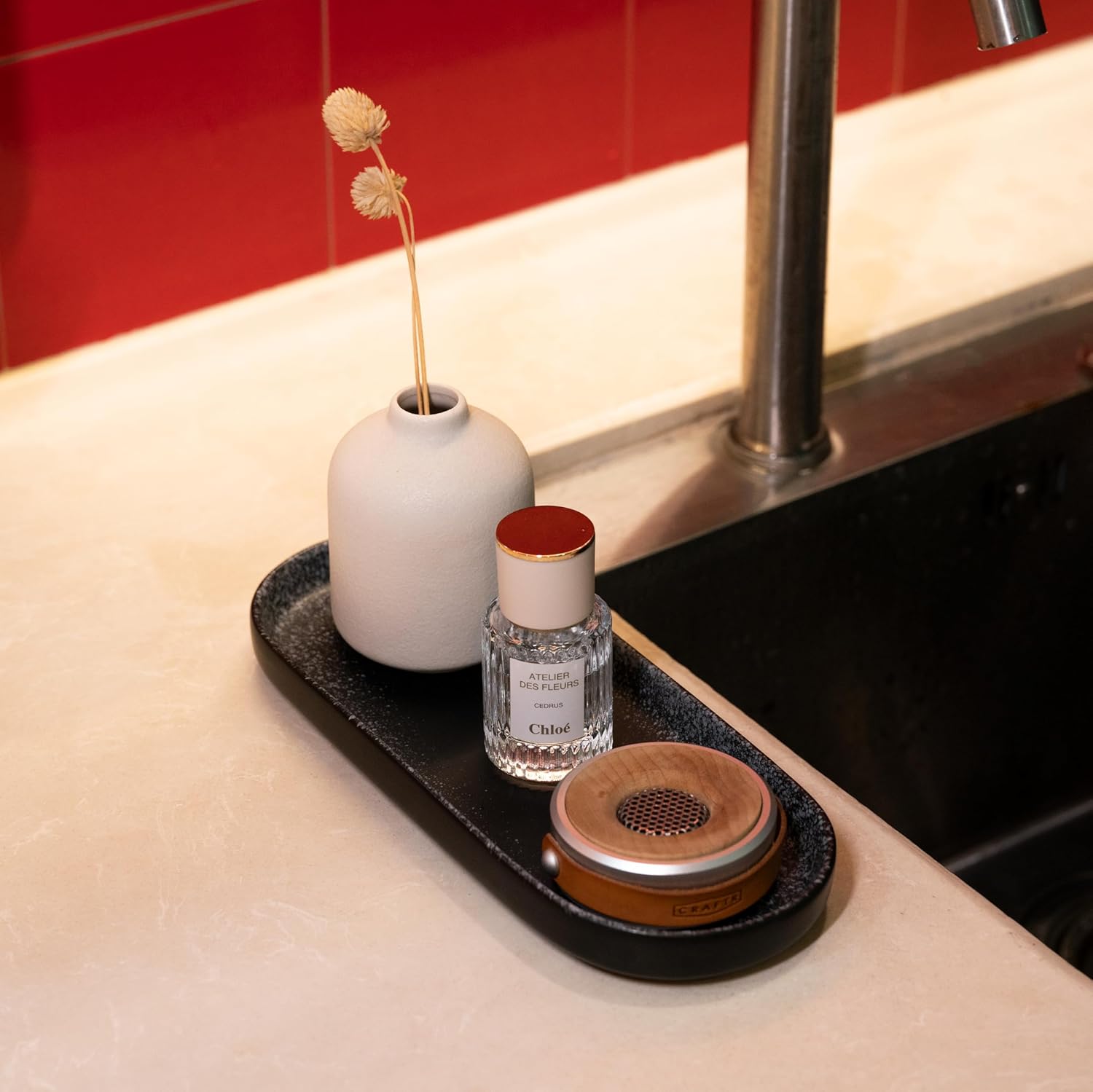 - Selected Material: Our tray is crafted from high-quality clay and fired at high temperatures using modern technology, resulting in a thick, delicate surface that is sturdy and durable. The unglazed bottom provides excellent anti-slip properties. The tray is waterproof, high-temperature resistant, and retains its color, making it ideal for use in the bedroom, bathroom, or kitchen. The ceramic is easy to clean and can be rinsed directly and dishwasher safe, ensuring very low maintenance costs.