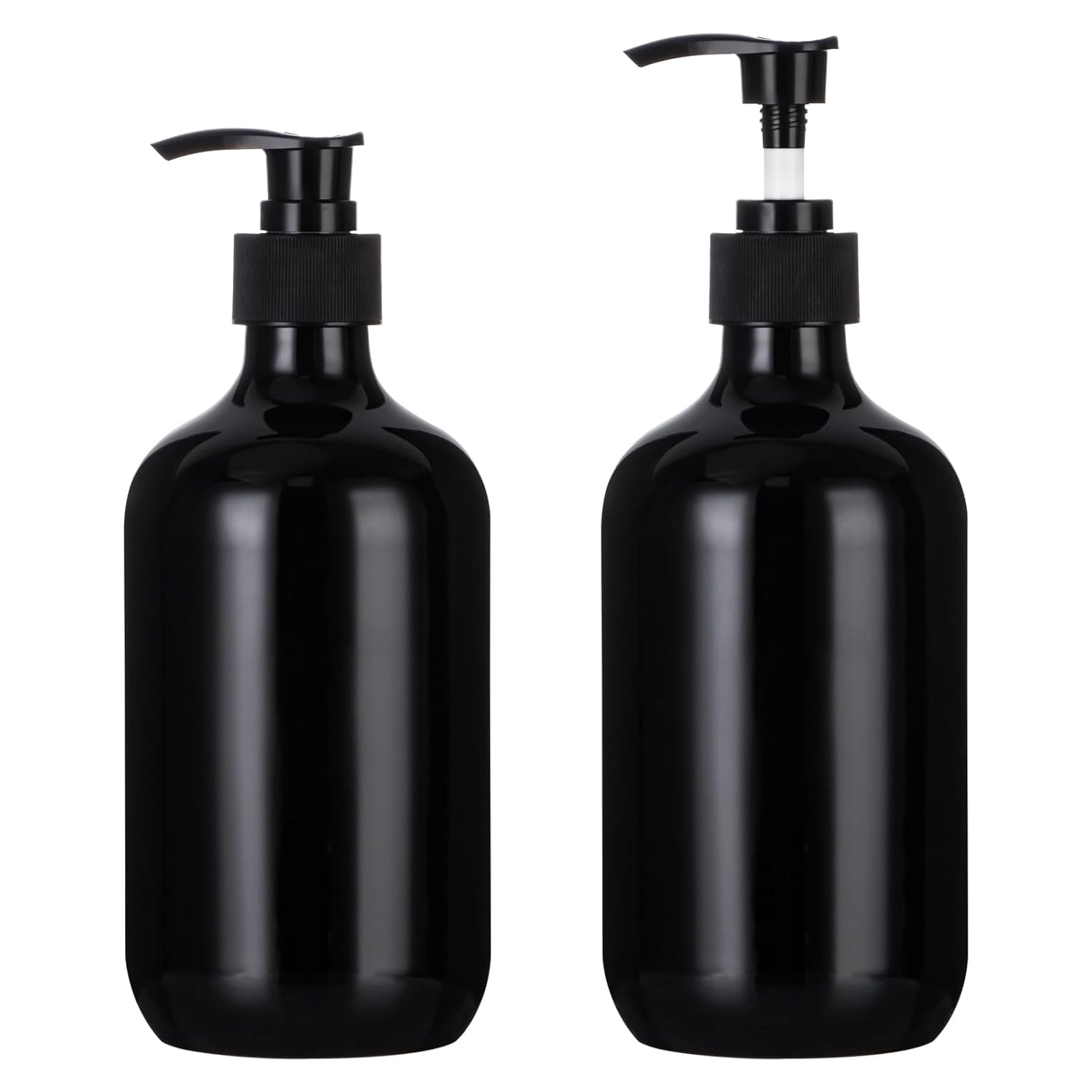 Yebeauty Pump Bottle Dispenser, 17oz 500ml Empty Plastic Shampoo Conditioner Dispenser, Refillable Shower Soap Dispenser Pump Bottle Liquid Containers for Kitchen Bathroom, 2 Pack Black
