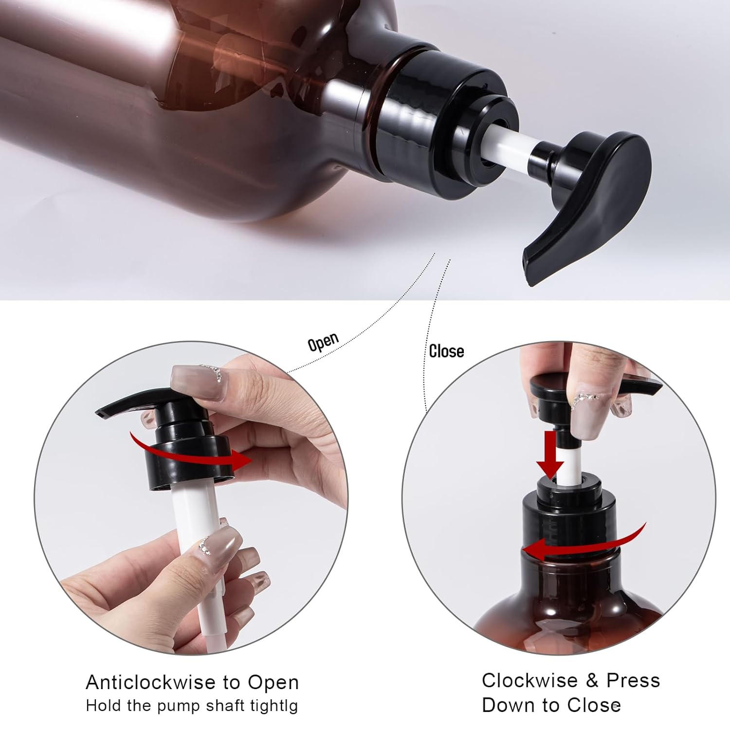 Yebeauty Pump Bottle Dispenser, 33.8oz 1000ml Plastic Shampoo Pump Bottles Shower Soap Dispenser Empty Refillable Containers for Conditioner Body Wash, Bathroom Kitchen, 2 Pack Amber