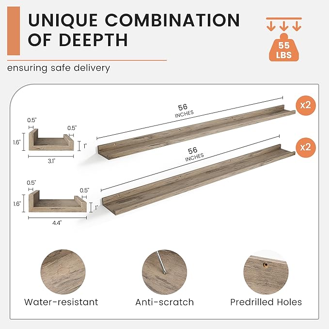 - 【Easy to Install】FLYJOE picture ledge shelves are quick and easy to install! Each set comes with pre-drilled holes and all necessary hardware, including a mini level for perfect alignment. With simple instructions, you can have your shelves up in minutes, allowing you to start decorating right away