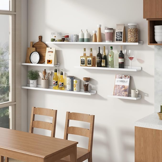 - 【Versatile and Multi-Functional】These shelves aren’t just for photos! FLYJOE ledge shelves can be creatively used as kids' bookshelves, display shelves for collectibles, spice racks in the kitchen, or even over-the-toilet storage in the bathroom. Their adaptability makes them a practical choice for any room in your home