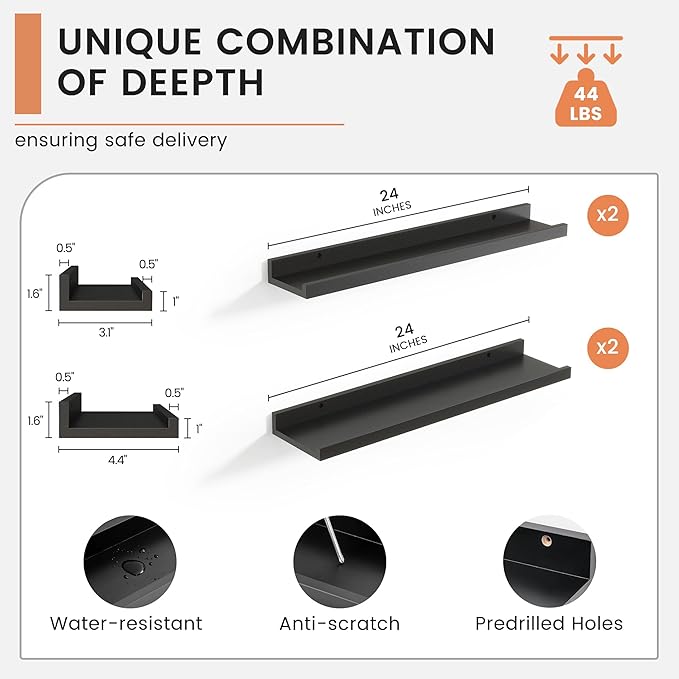 - 【Easy to Install】FLYJOE picture ledge shelves are quick and easy to install! Each set comes with pre-drilled holes and all necessary hardware, including a mini level for perfect alignment. With simple instructions, you can have your shelves up in minutes, allowing you to start decorating right away