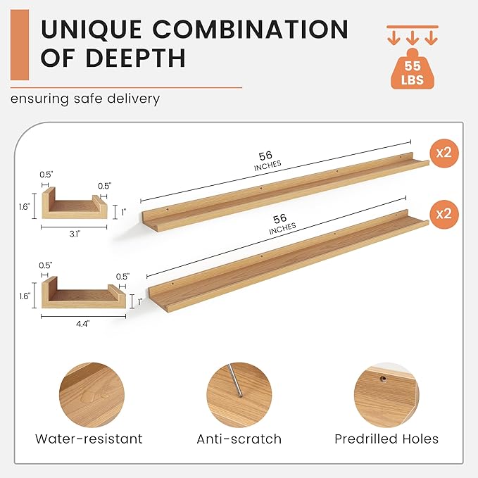- 【Easy to Install】FLYJOE picture ledge shelves are quick and easy to install! Each set comes with pre-drilled holes and all necessary hardware, including a mini level for perfect alignment. With simple instructions, you can have your shelves up in minutes, allowing you to start decorating right away