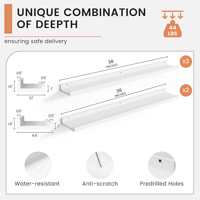 - 【Easy to Install】FLYJOE picture ledge shelves are quick and easy to install! Each set comes with pre-drilled holes and all necessary hardware, including a mini level for perfect alignment. With simple instructions, you can have your shelves up in minutes, allowing you to start decorating right away