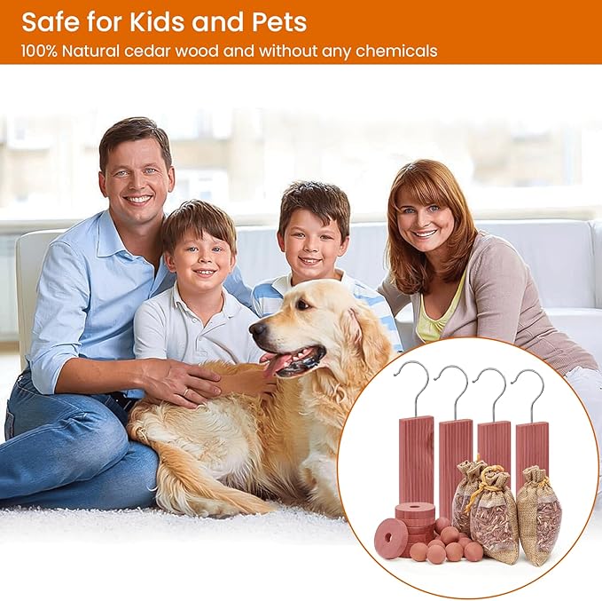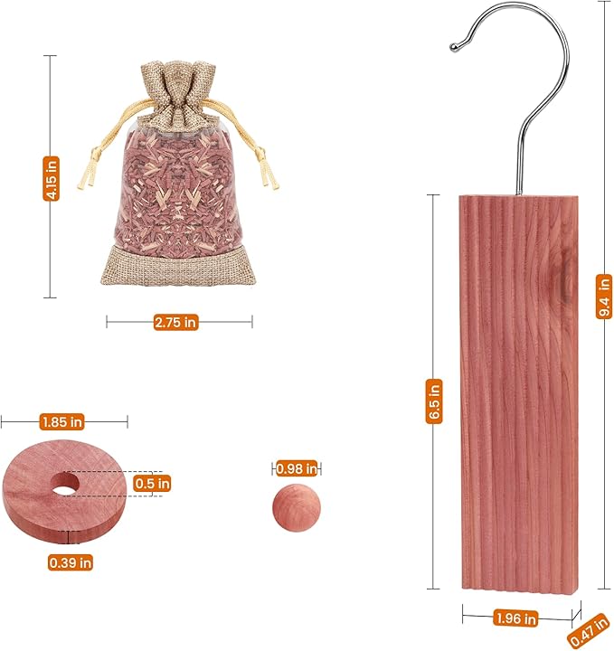 - EASY CLOTHES STORAGE: Cedar closet pack with 4 cedar hang ups, 7 cedar rings, 16 cedar balls, 3 cedar sachets and 1 sandpaper protects your linens and clothing in closets, wardrobe or storage bags naturally