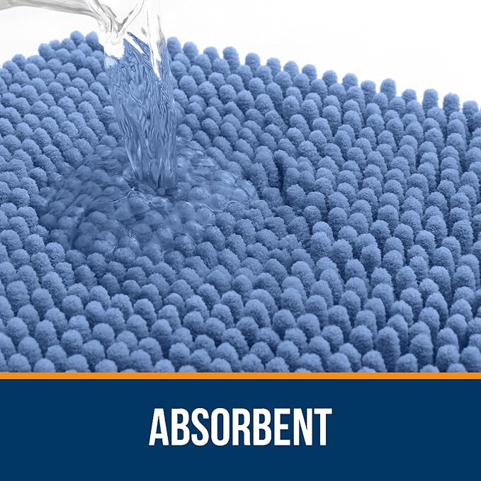 OLANLY Bathroom Rugs 44x24, Extra Soft Absorbent Chenille Bath Rugs, Rubber Backing Quick Dry, Machine Washable Bath Mats for Bathroom Floor, Tub and Shower, Home Decor Accessories, Cornflower Blue