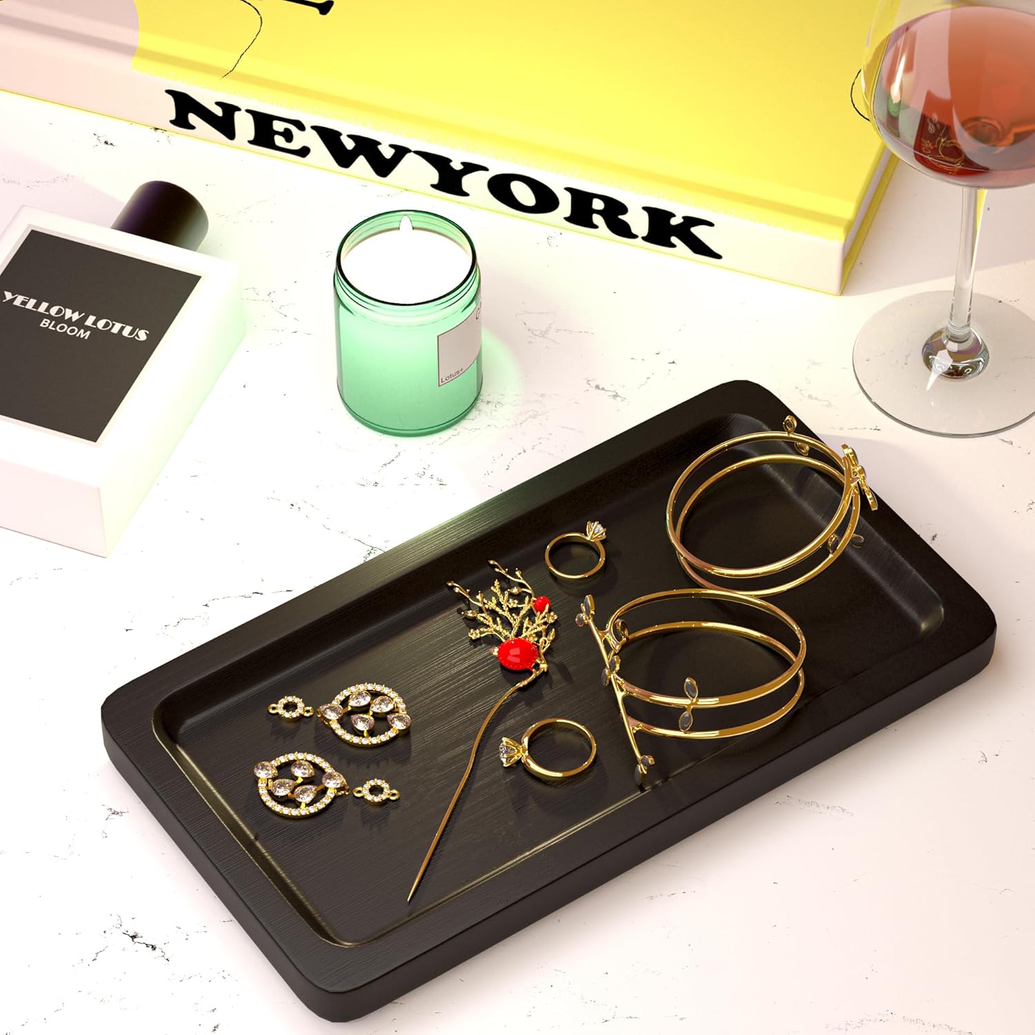 - Small Black Wooden Trays for Bathroom: The black bathroom counter tray features a slip resistant design to stay securely in place on any surface. It’s ideal for use as a hand soap holder for bathroom sink, or tray for soap dispenser kitchen. Keep your essentials within reach with this small black vanity trays for bathroom counter.