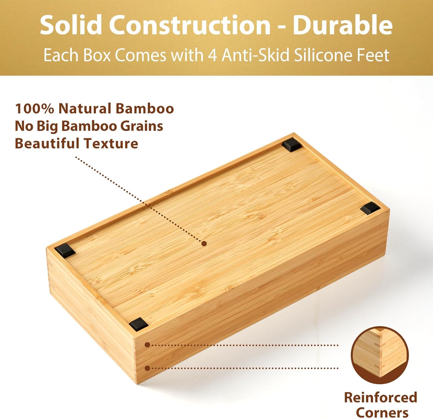 Umilife Bamboo Kitchen Utensils Organizer, Extra High Silverware Drawer Holder, Flatware Cutlery Storage Box, Multi-Use Drawer Divider in Office, Bathroom, Pantry - 12"x6"x2.5" (Set of 2)