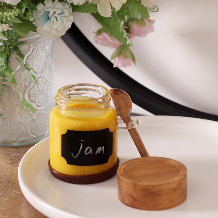 - There super cute mini glass jars. Comes in a 4 pack. with its individual spoons.