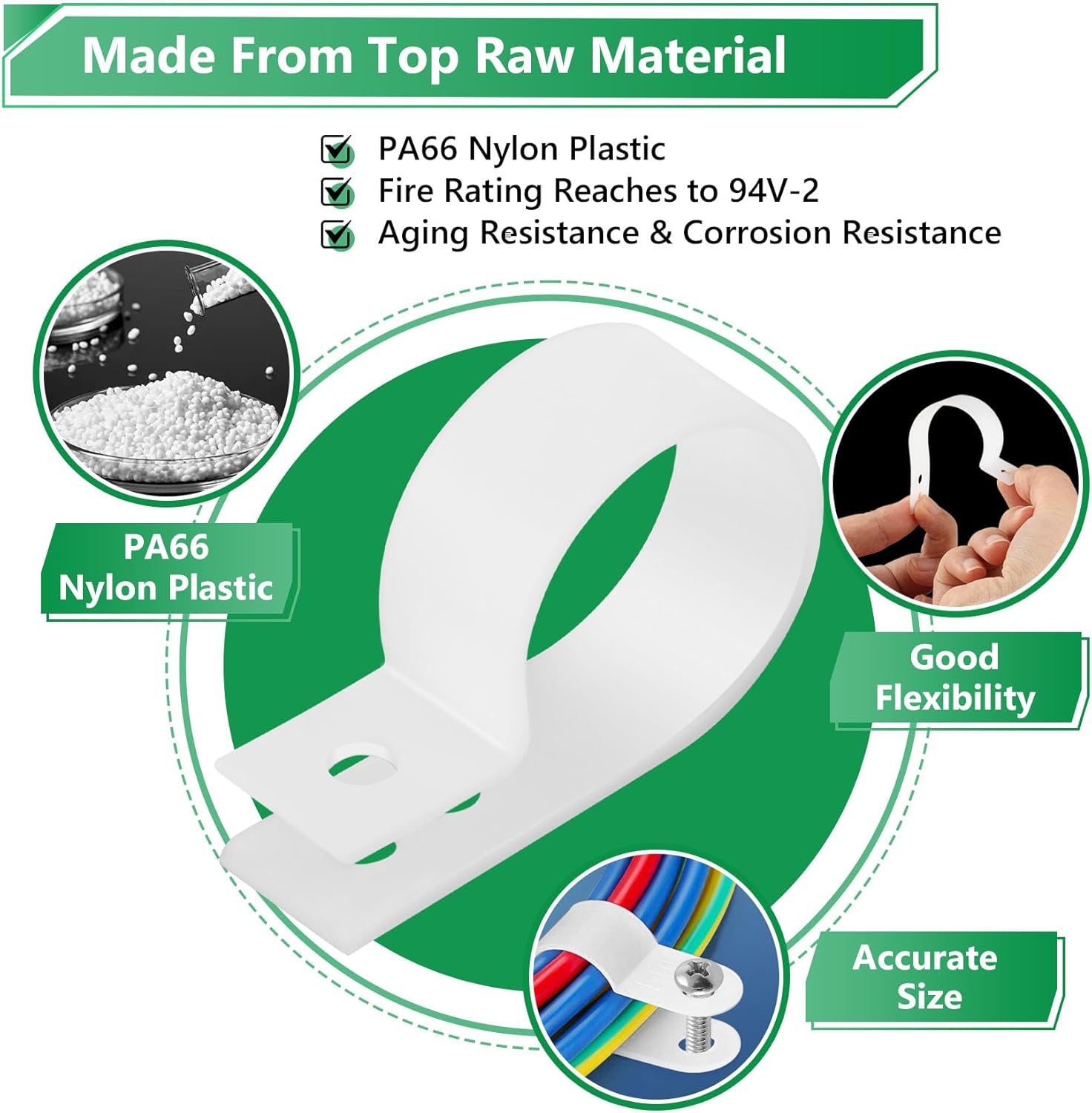 - 【Easy to Organize】 – Only need to put the wire into the round hole, and tighten the wires with one screw. Fast and convenient. From then on, organizing your space becomes a piece of cake for you. Besides, they can be used repeatedly. Nylon cable clamp assortment is not easy to fall off, help you to avoid the trouble of messy wire, give you a safe and tidy home.