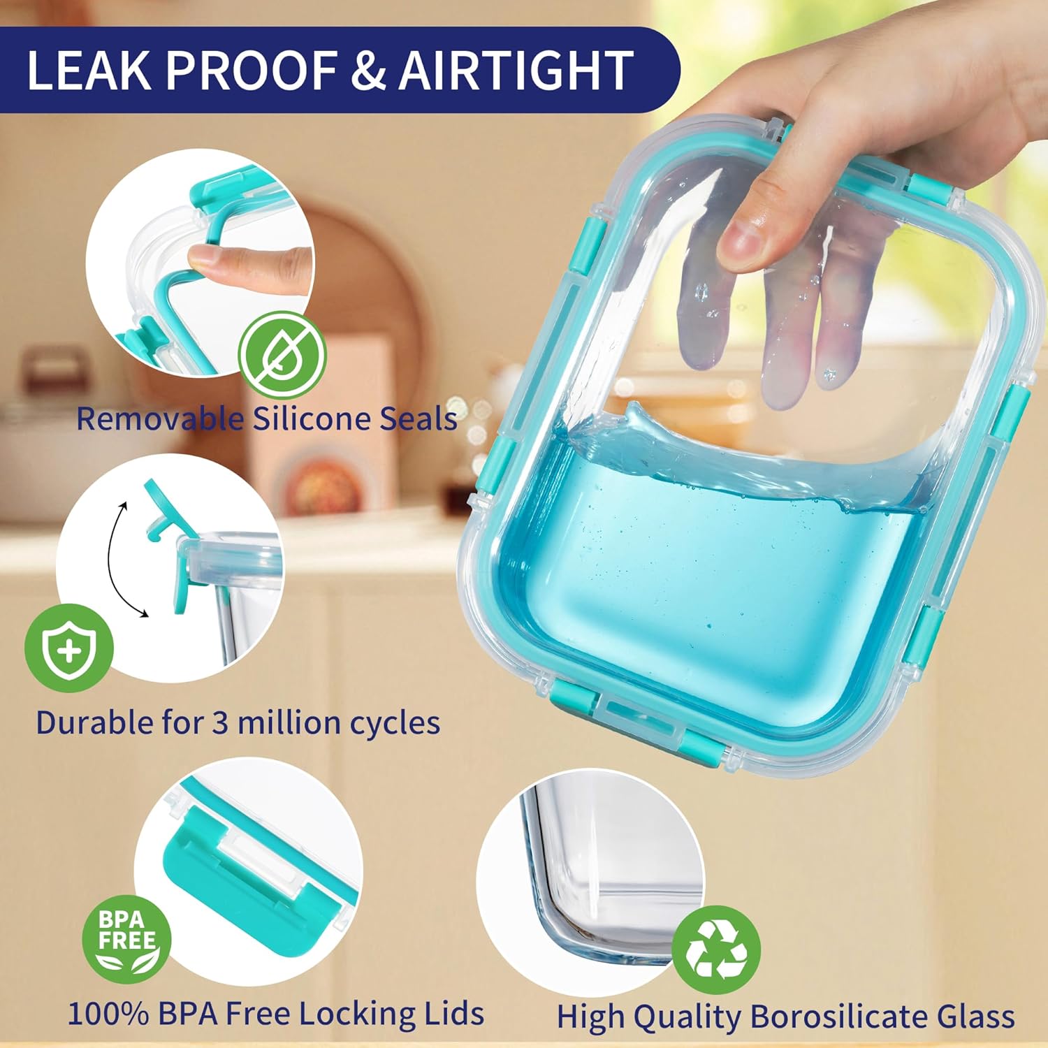 - Airtight Locking Lids: The glass containers for food storage is designed with removable silicone seals and 4-hinge snap locks to ensure no leaks or spills, these lids are easy to open and close. glass food containers with lids are used for meal prep, office lunches, leftovers, portion control, bringing to the gym, picnics, travel and more