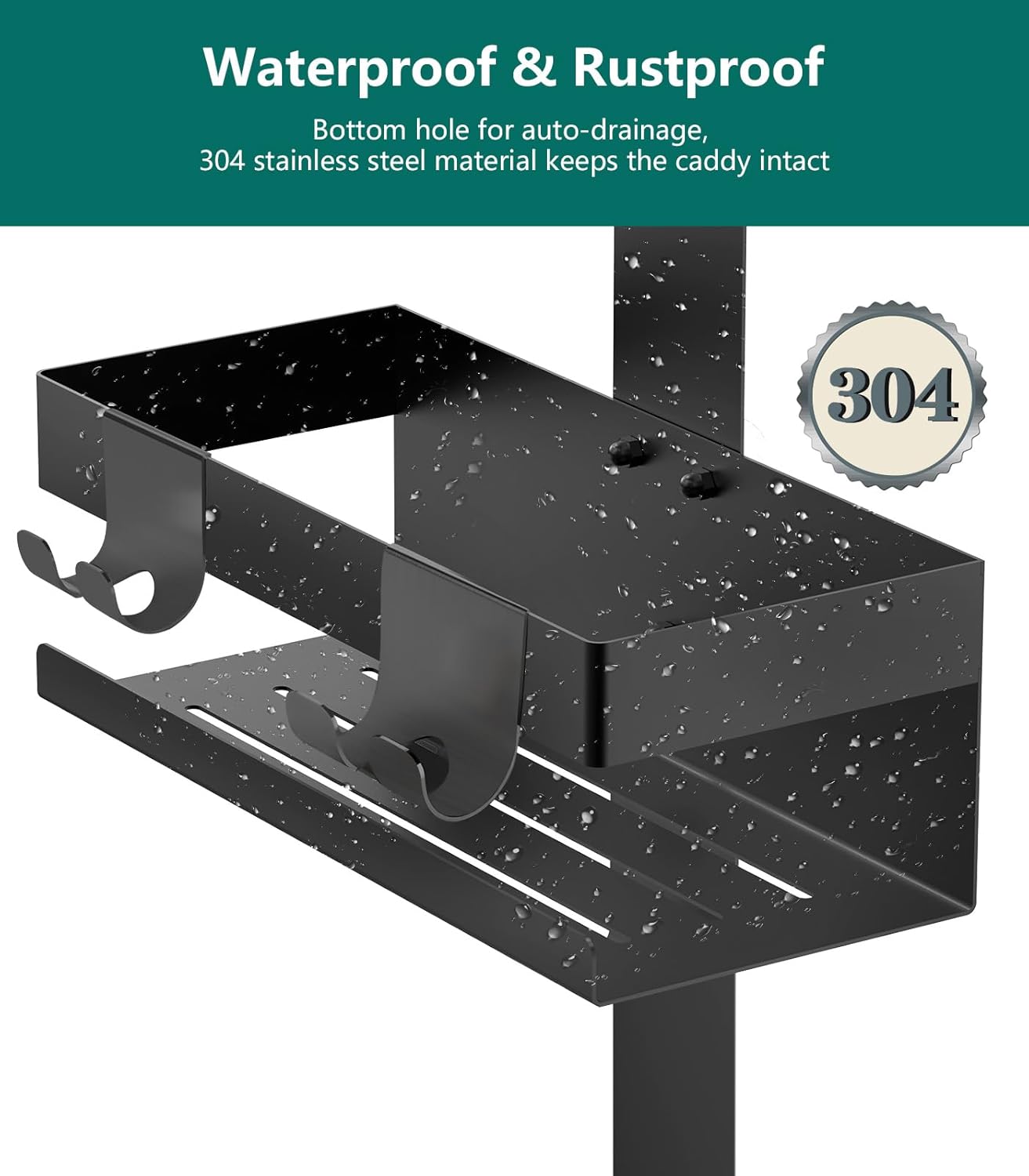 - 【Rust-proof Material & Quick Drying】Made of high-quality stainless steel, this shower shelf can be hung in the bathroom for a long time, withstanding water droplets, and fog. The openings at the bottom of the basket facilitate automatic drainage, and the upside-down design prevents water from accumulating in the toothbrush cup.