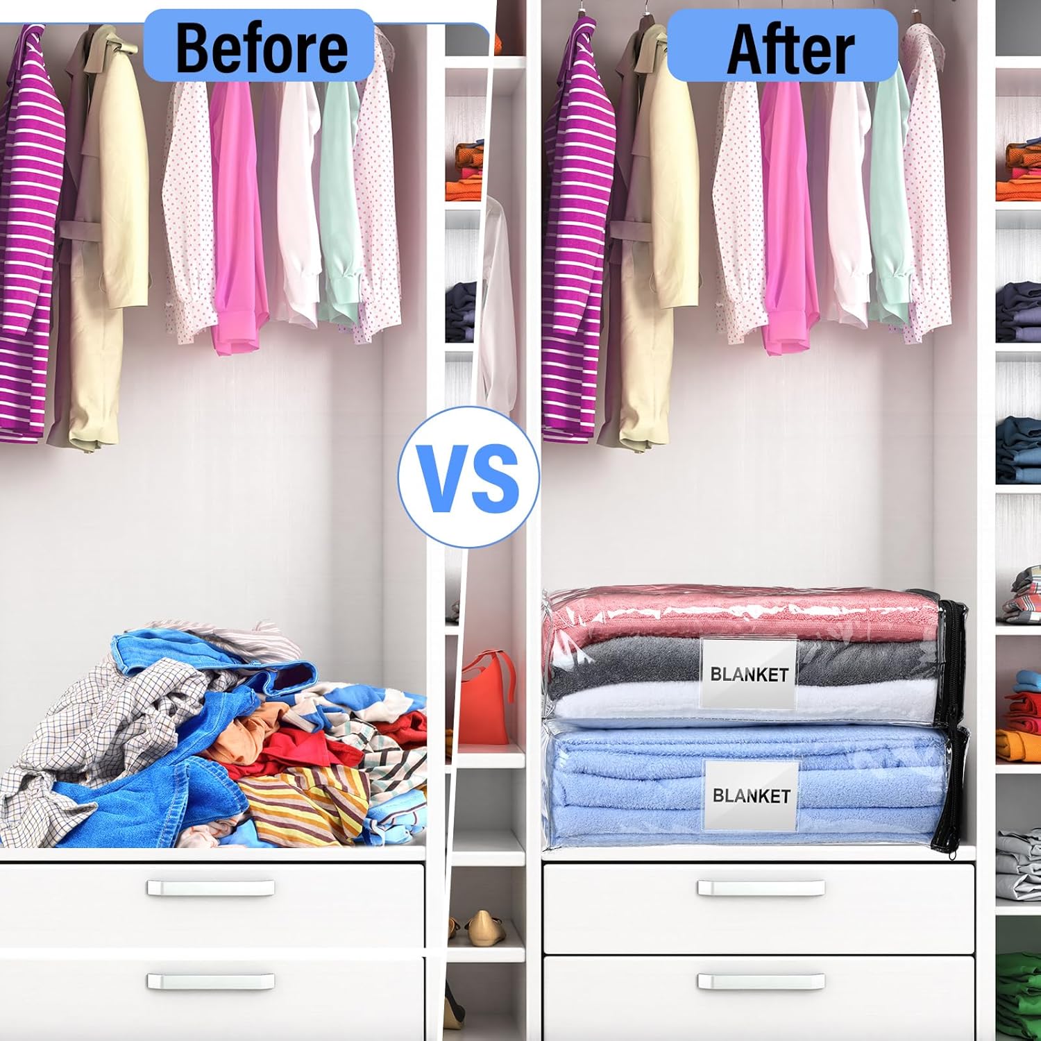 - Practical and Functional: the clear storage bags with zipper are suitable for organizing comforters, blanket, out of season clothes, shoes, toys, pillows, sweaters, towels, tablecloth, curtains, and anything else that you like, keeping your closet tidy and clean
