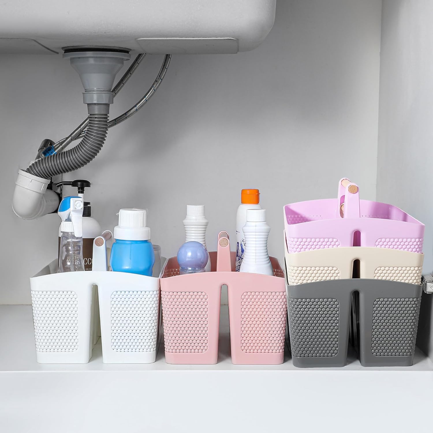 - Versatile Storage: The bathroom caddy is ideal for use on bathroom shelves, under-sink cabinets, bookshelves, dressing tables, kitchen cabinets, and closets, saving space while allowing for convenient transportation. It is also suitable for organizing toys, books, paints, utensils, pet supplies, and more. It can be used in various settings such as bathrooms, college dorms, children's rooms, bedrooms, laundry rooms, utility rooms, kitchens, craft rooms, garages, RVs, and more