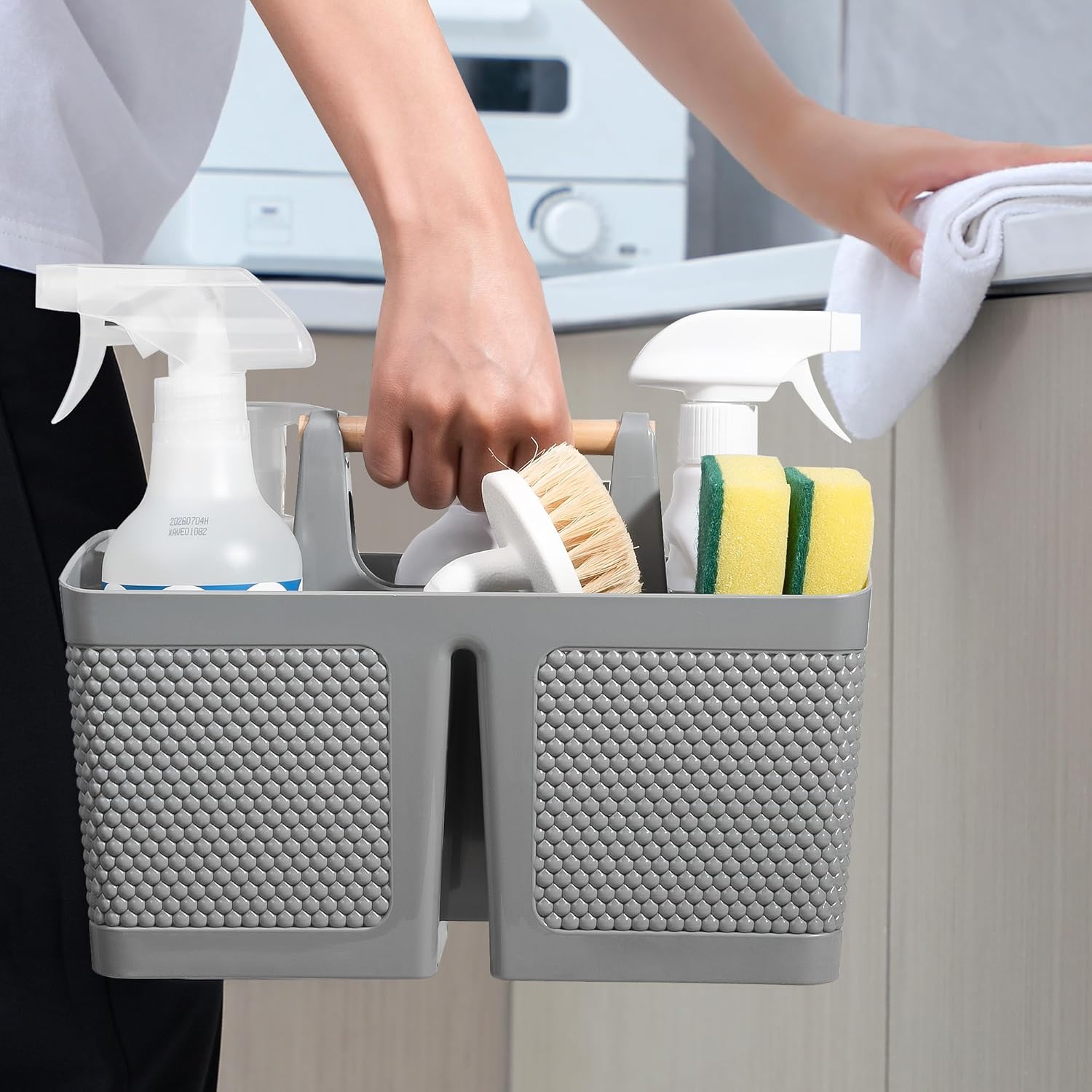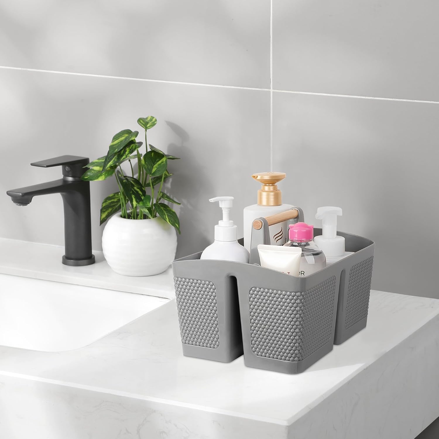 - Easy to Use and Clean: The shower caddy portable features a wooden handle that has been polished and treated with a waterproofing process for enhanced comfort and durability. The basket body is made of durable plastic, BPA-free, and designed with water droplet patterns for breathability. It has a smooth and rounded texture, making it suitable for organizing items for children, moms, students, teenagers, guys, women, and more. Simply rinse with water for easy cleaning