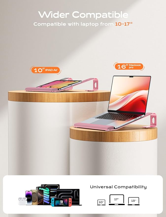 Laptop Stand for Desk, Laptop Stand with Wrist Support, Ergonomic Detachable Laptop Riser, Mount, Holder Notebook Computer Stand for MacBook Air Pro, HP, Dell, XPS, HP (10-17") Laptops - Pink