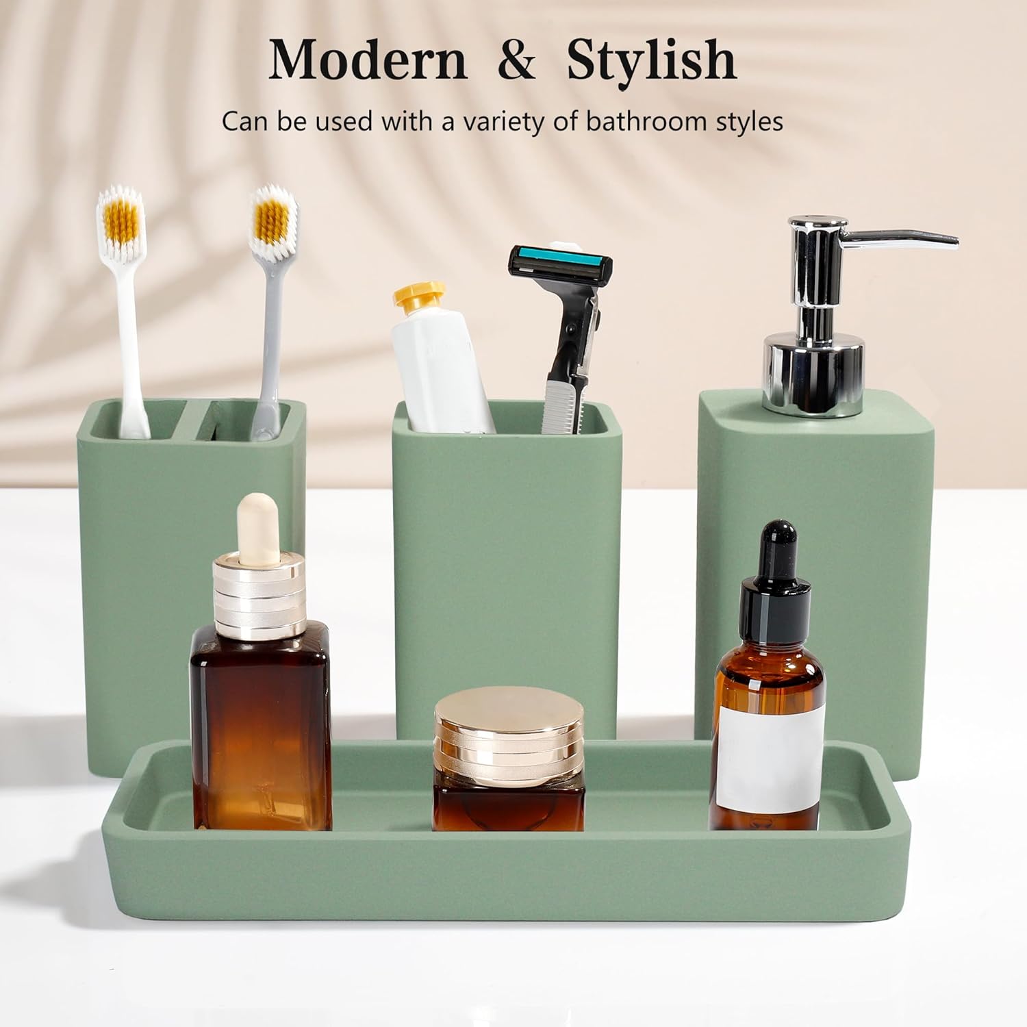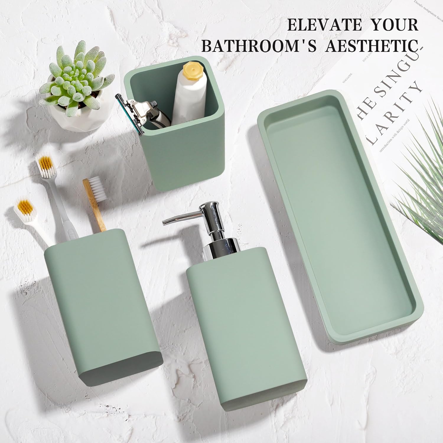 Bathroom Accessories Set, 4 Pcs Bathroom Accessory Set, Soap Dispenser, Toothbrush Holder, Qtip Holder Set, Bathroom Sets Complete, Bathroom Sink Set for Modern Home Decor,Green