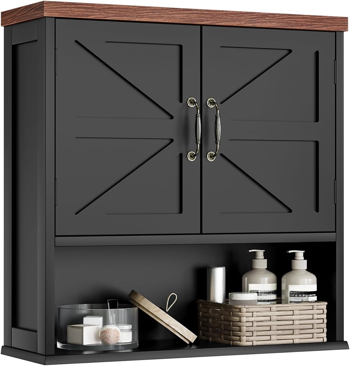 Smuxee Farmhouse Wall Mounted Cabinet, Black Medicine Cabinet with Adjustable Shelf, for Bathroom, Living Room, Laundry Room