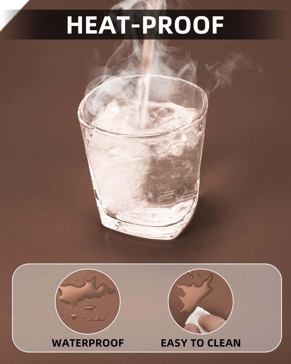 PULeather Non-Slip Desk Mat, Large Mouse Pad & Laptop Desk Pad - Waterproof Writing Pad for Office & Home (Brown, 35.4" x 17")