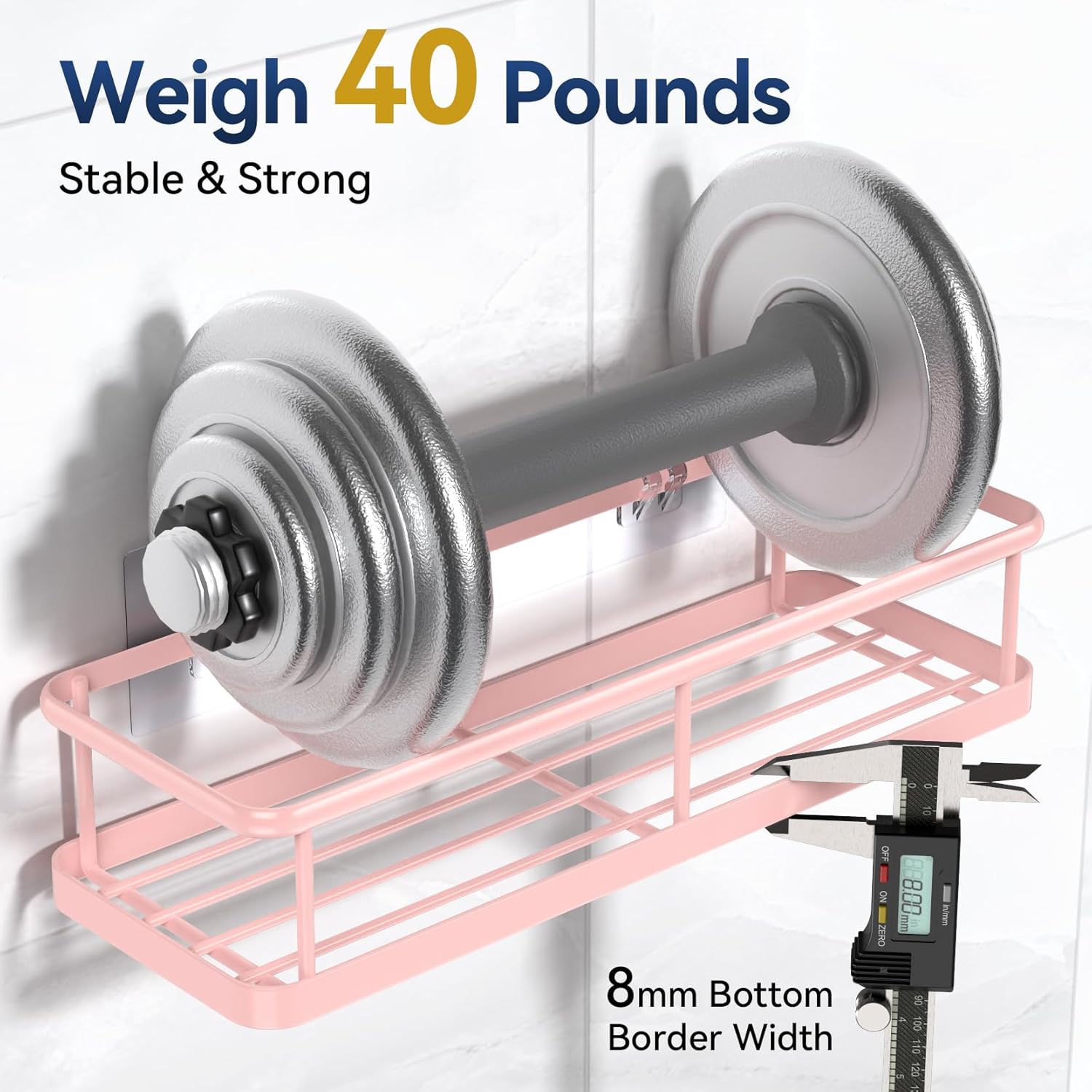 - 【Strong Adhesives, Weight up to 40 Pounds】 - The adhesives of the shower caddy is super strong, allowing the wall-mounted shower holder to hold 40 pounds with greater stability. Keep bottles stably in the shower basket in the bathroom so they are easy access. After installed correctly, there is no need to worry about dropping.