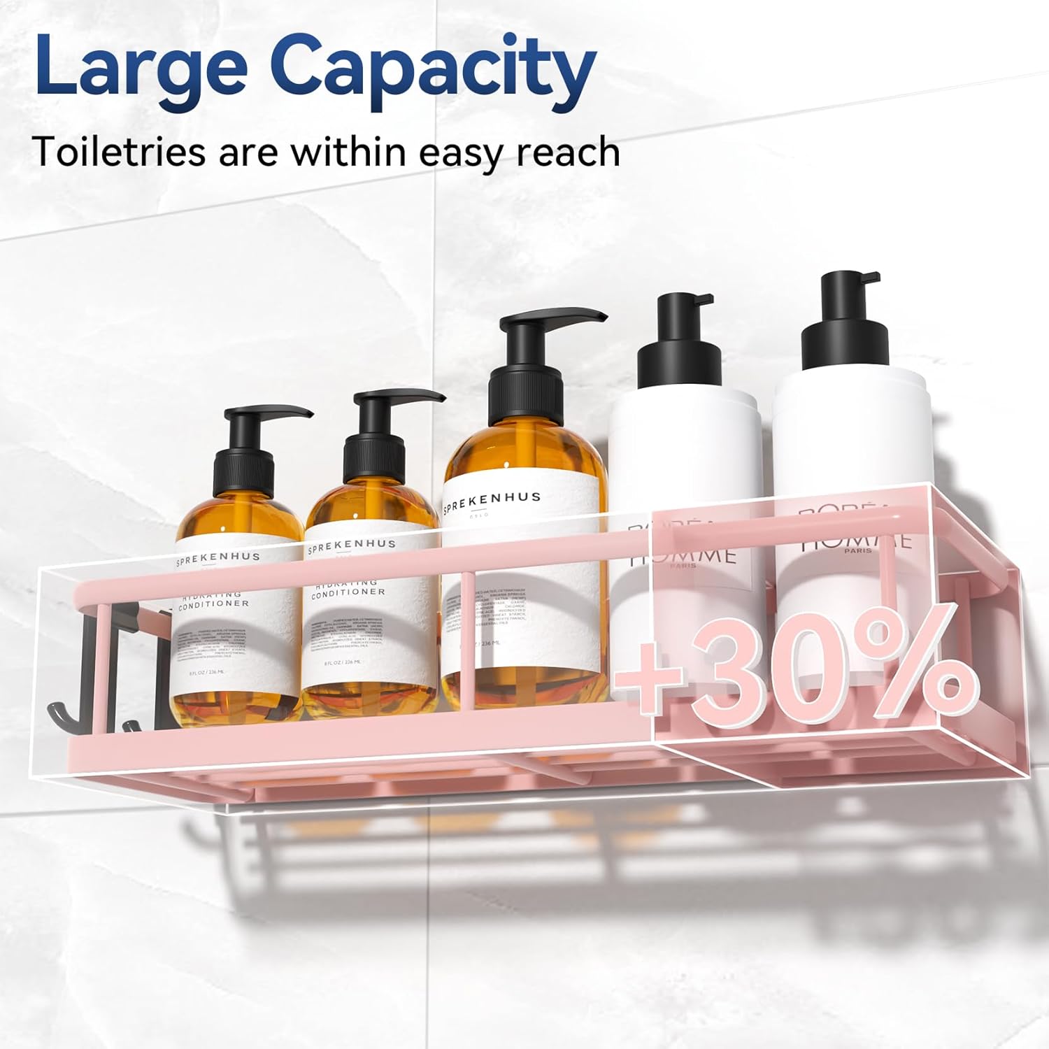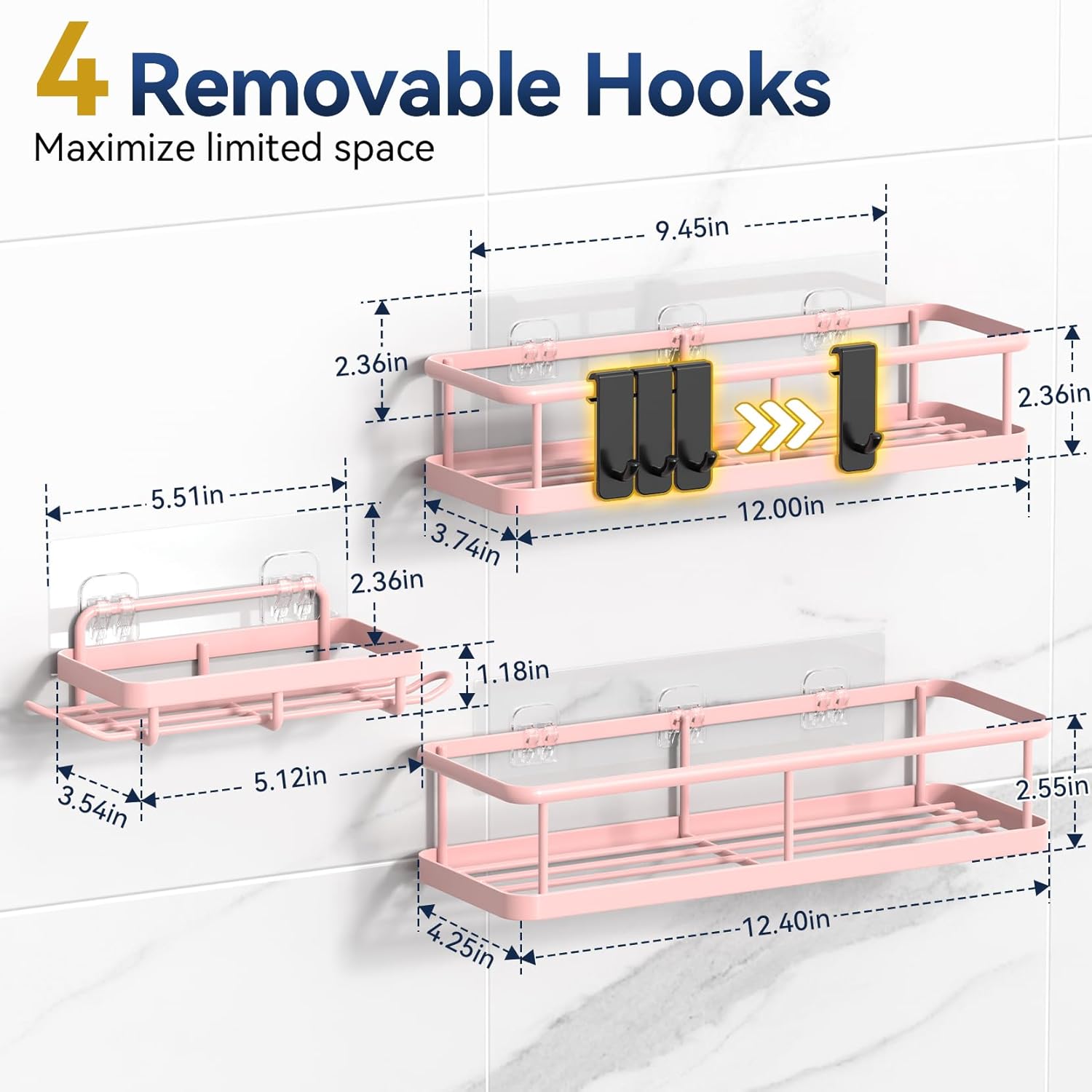 YASONIC Shower Caddy Adhesive, No Drill Bathroom shower Organizers, with Removable Hooks and Soap Holder, Rust Proof Shower Shelves, Wall-Mounted Shower Holder, 3 Pack, Pink