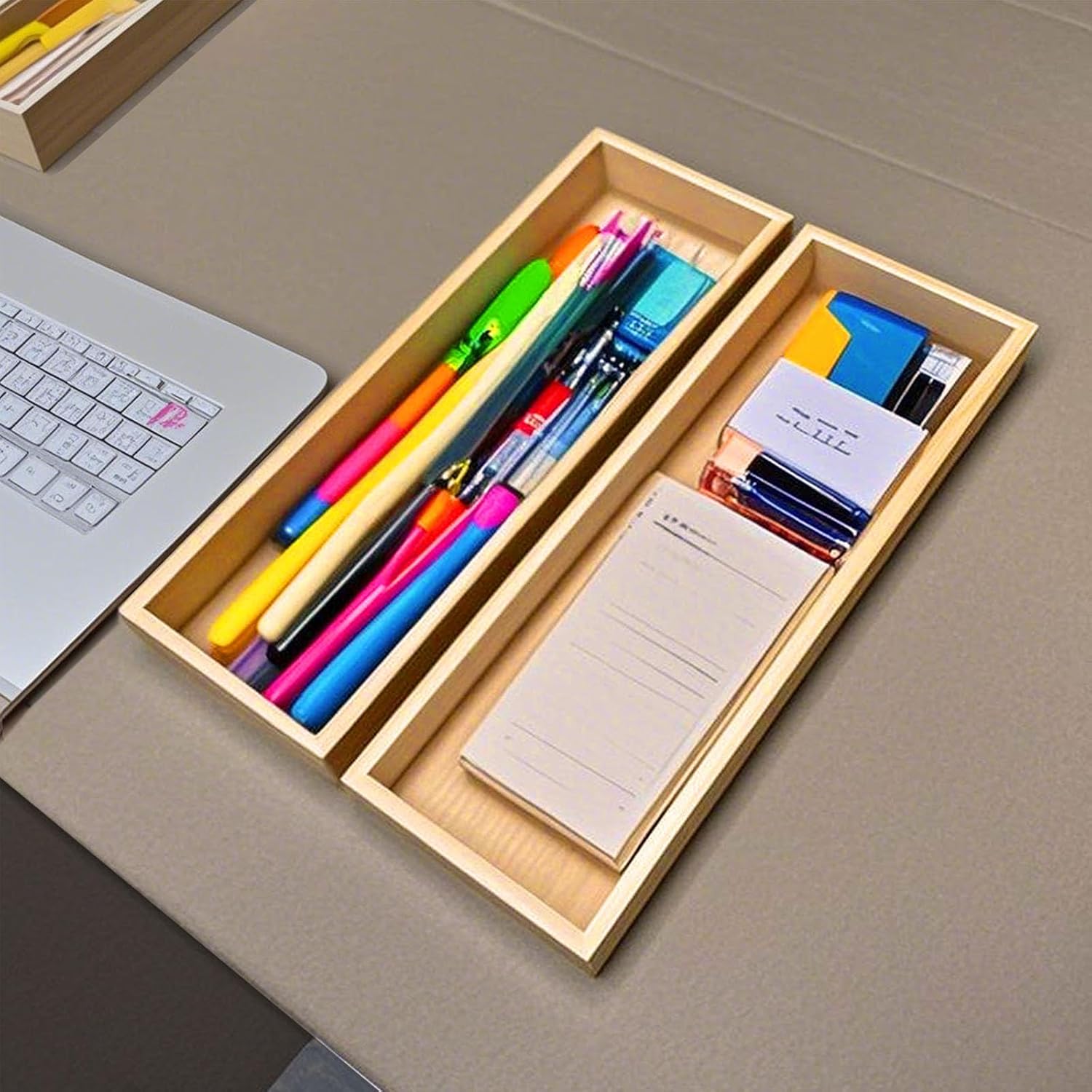 Bamboo Drawer Organizer, Utensil Organizer for Kitchen, Bamboo Storage Box Wood Silverware Tray for Drawer Set of 2