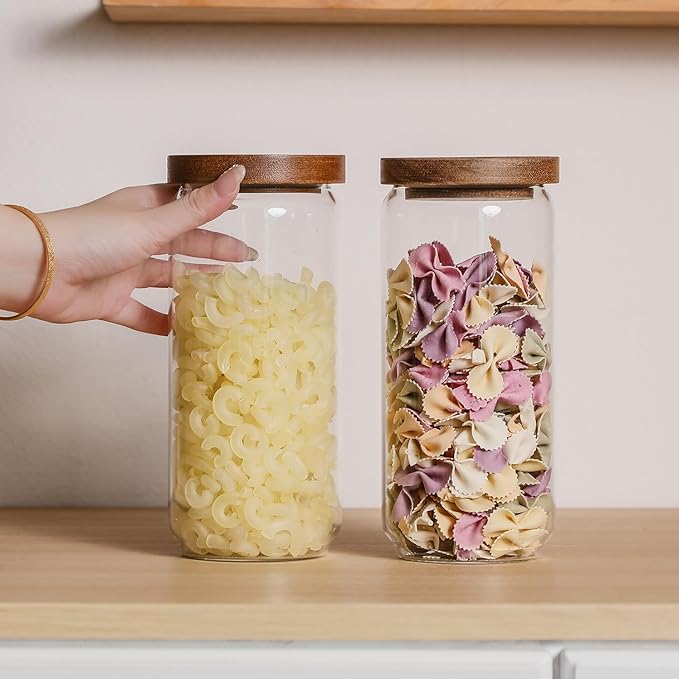 Glass Jar with Lid 3.54 Inch Wide, 34 OZ Airtight Food Storage Containers Glass Set for Coffee Beans| Sugars| Candy, 2 Pack
