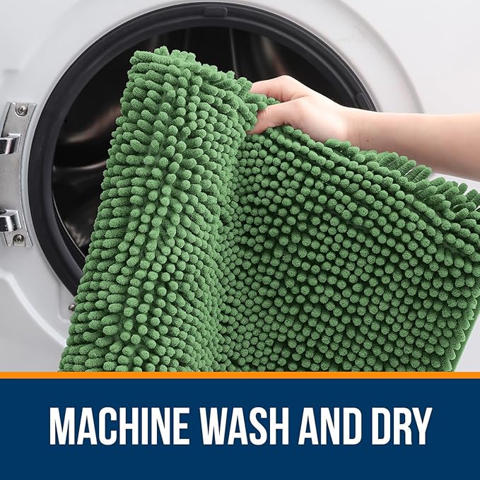 OLANLY Bathroom Rugs 59x24, Extra Soft Absorbent Chenille Bath Rugs, Rubber Backing Quick Dry, Machine Washable Bath Mats for Bathroom Floor, Tub and Shower, Home Decor Accessories, Olive Green