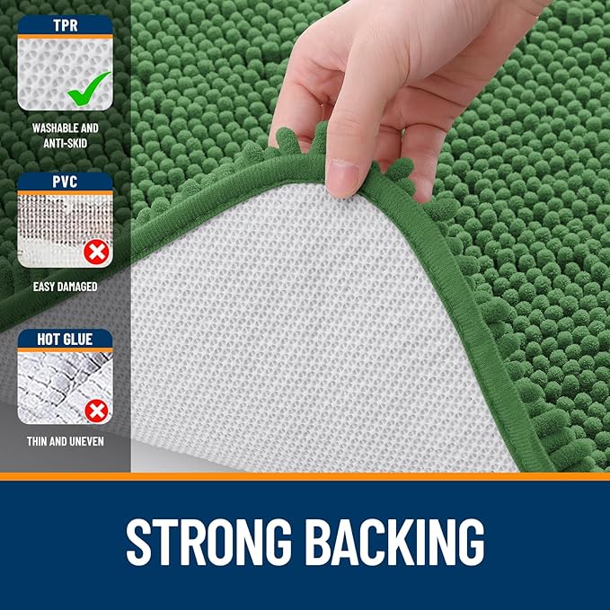 OLANLY Bathroom Rugs 44x24, Extra Soft Absorbent Chenille Bath Rugs, Rubber Backing Quick Dry, Machine Washable Bath Mats for Bathroom Floor, Tub and Shower, Home Decor Accessories, Olive Green