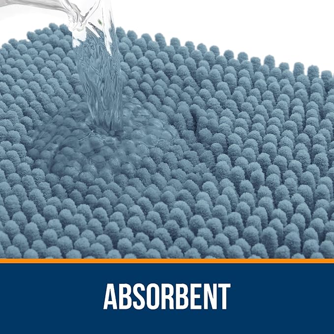 OLANLY Bathroom Rugs 44x24, Extra Soft Absorbent Chenille Bath Rugs, Rubber Backing Quick Dry, Machine Washable Bath Mats for Bathroom Floor, Tub and Shower, Home Decor Accessories, Airy Blue