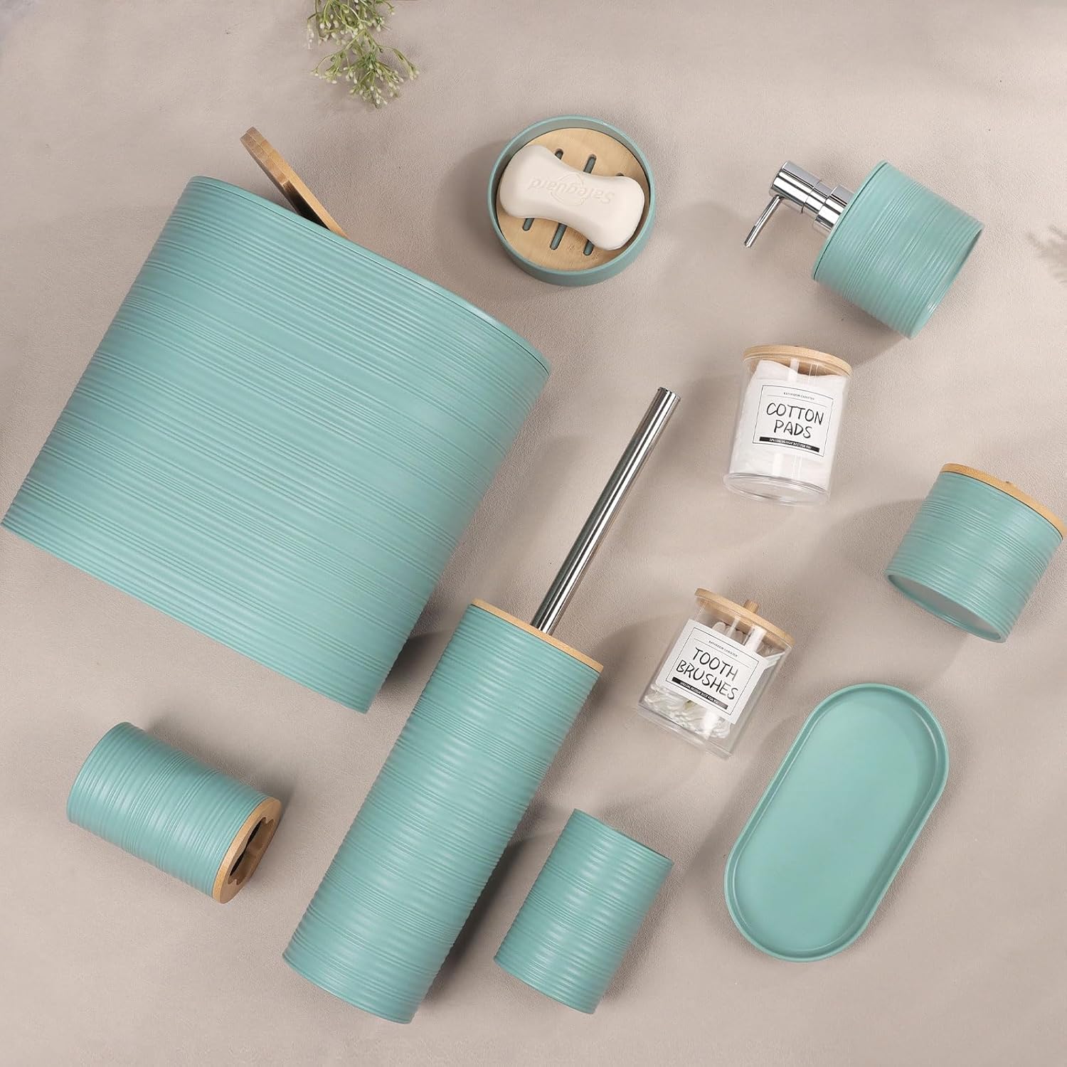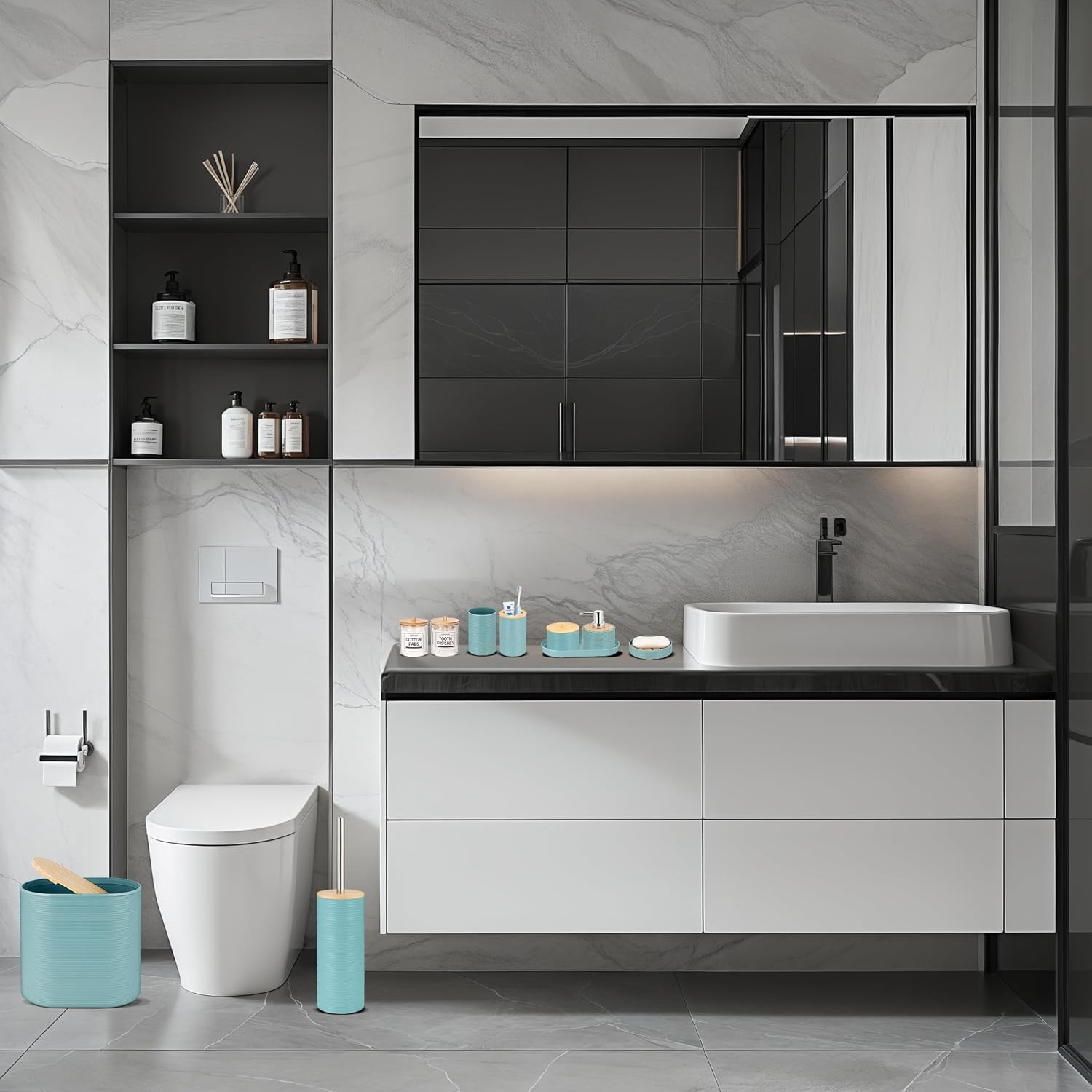 - Space-Saving Design: Maximize your bathroom space with our compact and cleverly designed blue bathroom accessories set.Whether you have a small powder room or a spacious master bathroom, our bathroom accessories set offers smart storage solutions without taking up unnecessary space.
