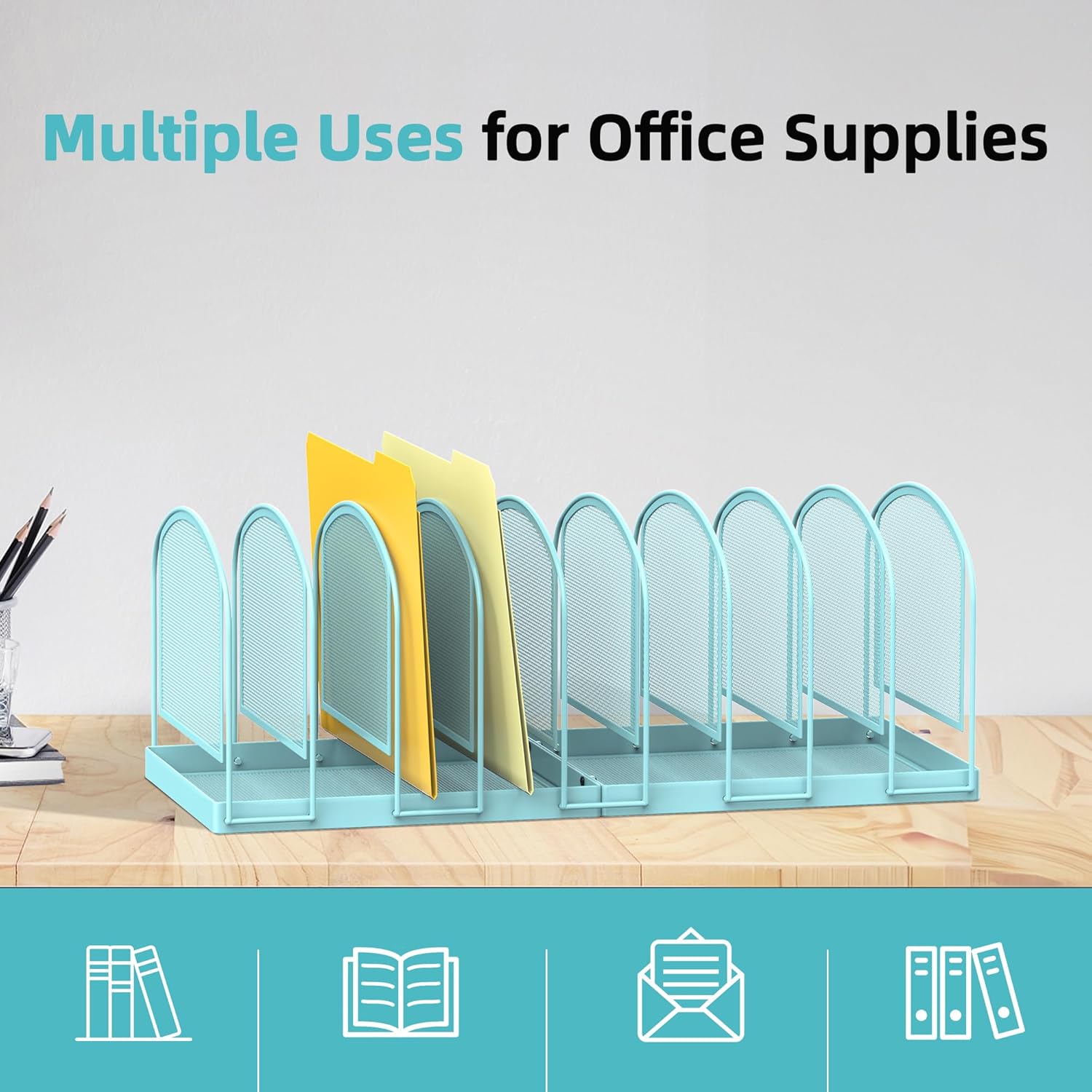 SUPEASY File Organizer 9-Section Mesh Desk Organizer, Upright File Organizer Desktop Organizer File Sorter, File Folder Holder for Office Supplies, Blue