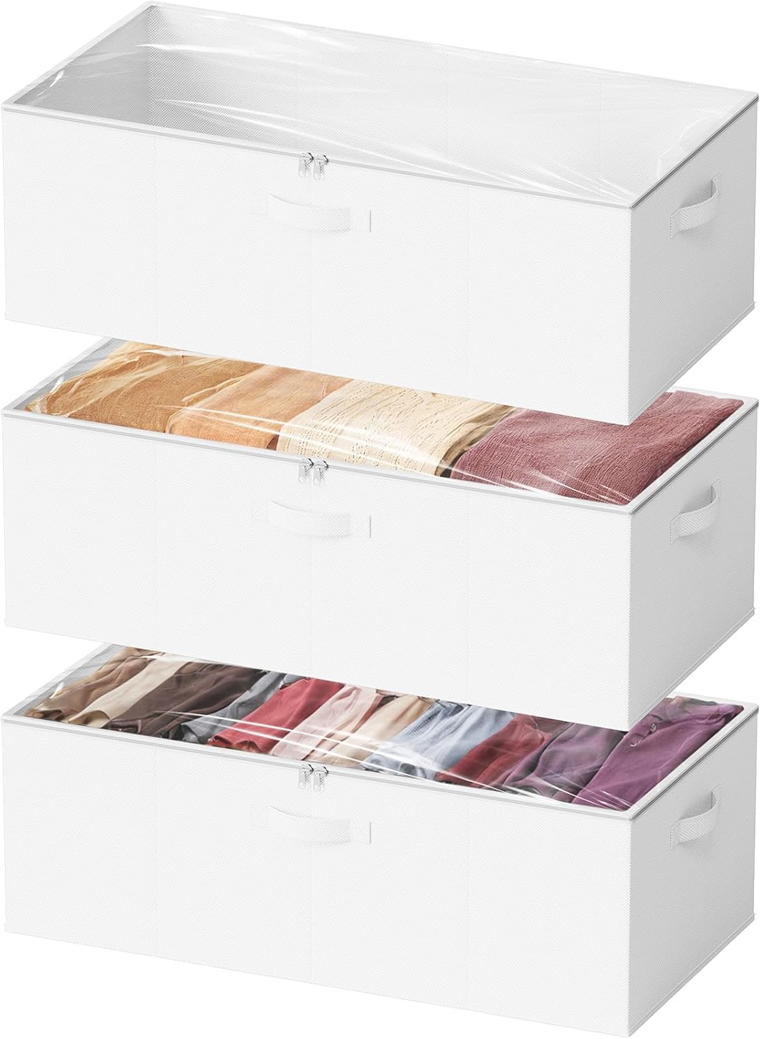 SpaceAid 3 Pack 10" High Under Bed Storage Containers, Large Underbed Storage Organizer Bins with Lids for Bedroom, Dorm, Clothes, Closet Organization, Bed Sheets and Blankets (White)
