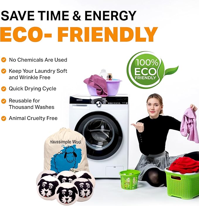 - Eco-Friendly and Reusable: Wool dryer balls are reusable, lasting for hundreds of loads. Unlike single-use dryer sheets, they generate less waste and are a more sustainable choice.