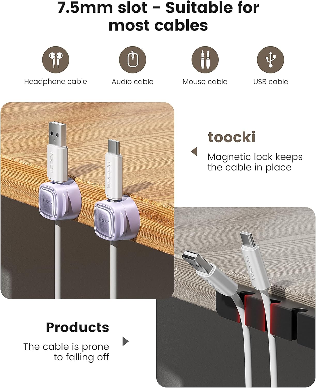 - Organize Your Space: Enhance your workspace or car with the toocki Magnetic Cable Clips, the ultimate cord organizer. This innovative cable management solution keeps your desk, nightstand, or vehicle free from clutter, offering a sleek and efficient way to handle all your cables.