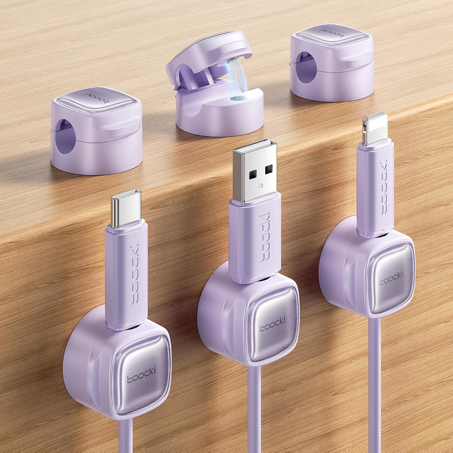 6 Pack Magnetic Cable Clips – Cord Organizer & Holder, Toocki Adhesive Cable Management, Wire Holder for USB Charging Cables, Ideal for Home, Office, Car, Desk, and Nightstand-Purple
