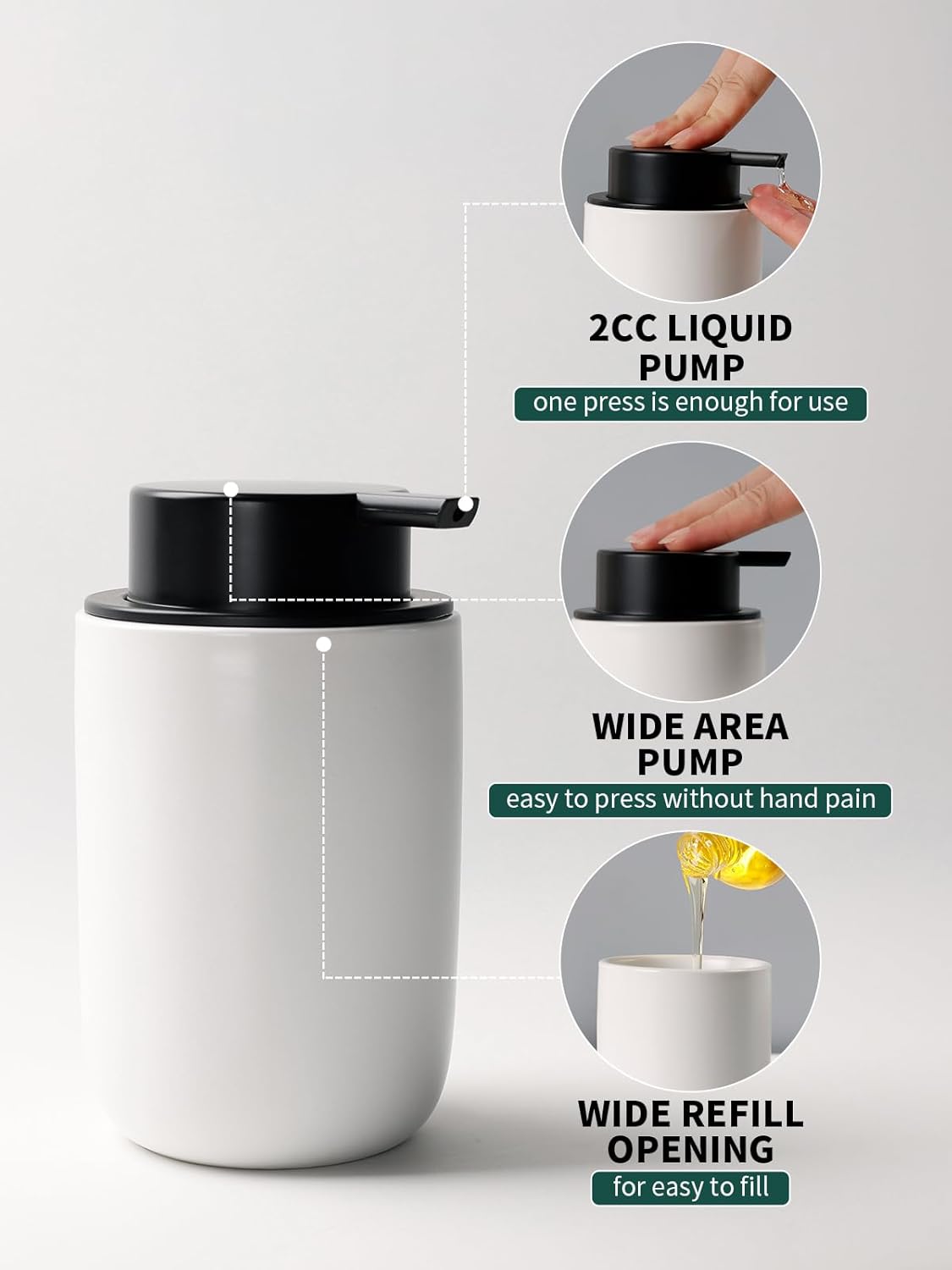 Bosilunlife Soap Dispenser and Toothbrush Holder Set - 11Oz Dish Hand Soap Dispenser Pump Ceramic Bathroom Counter Soap Toothbrush Holder Set White Bathroom Accessories Set