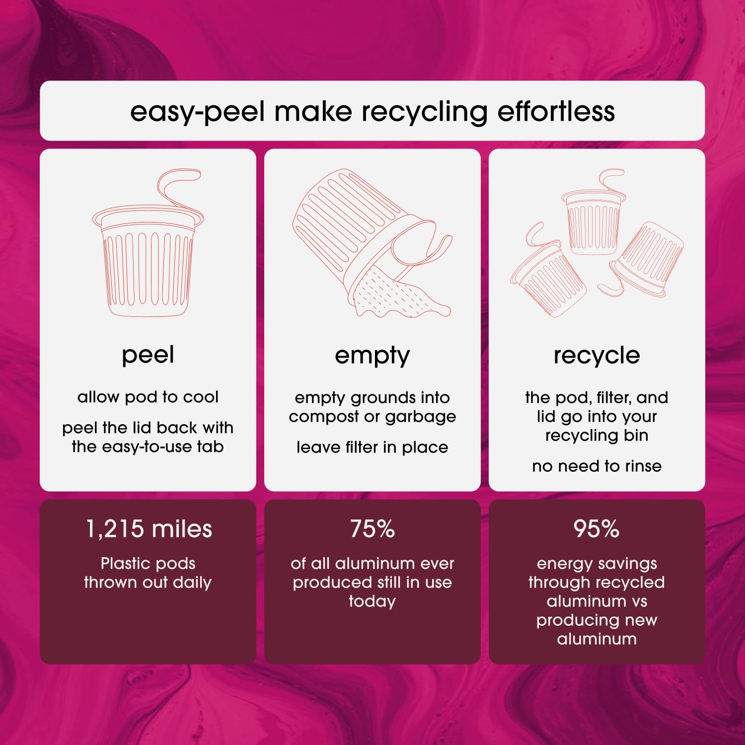 - Flavor Ridges: Each aluminum coffee k cup is designed with Flavor Ridges that provide more surface area for Cambio Coffee grounds, promoting more thorough water interaction during brewing. This optimized coffee pod design extracts 34% more flavor compared to standard pods.