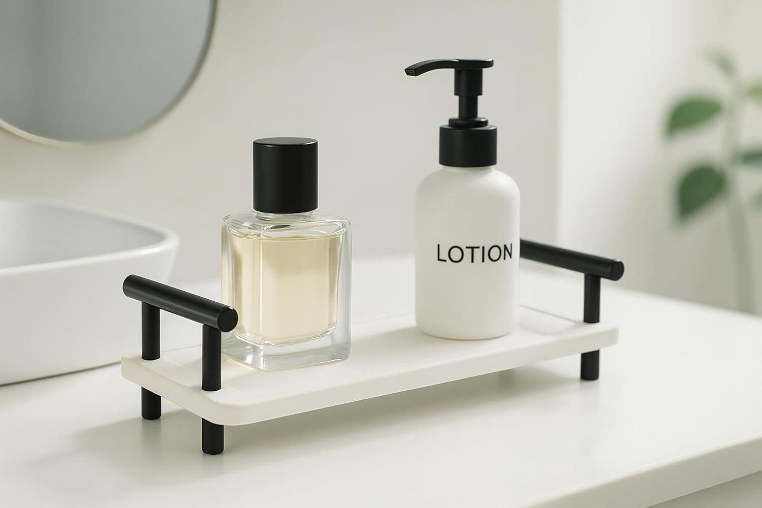 - Luxurious Handle Design: The bathroom sink tray comes with handles in black, adding a touch of luxury while making it easy to move and carry, increasing its functionality.