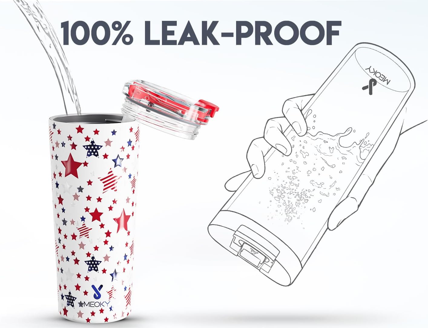 - NON-SLIP BASE. With non-slip base, Meoky travel coffee tumbler stands up and fights like a man.