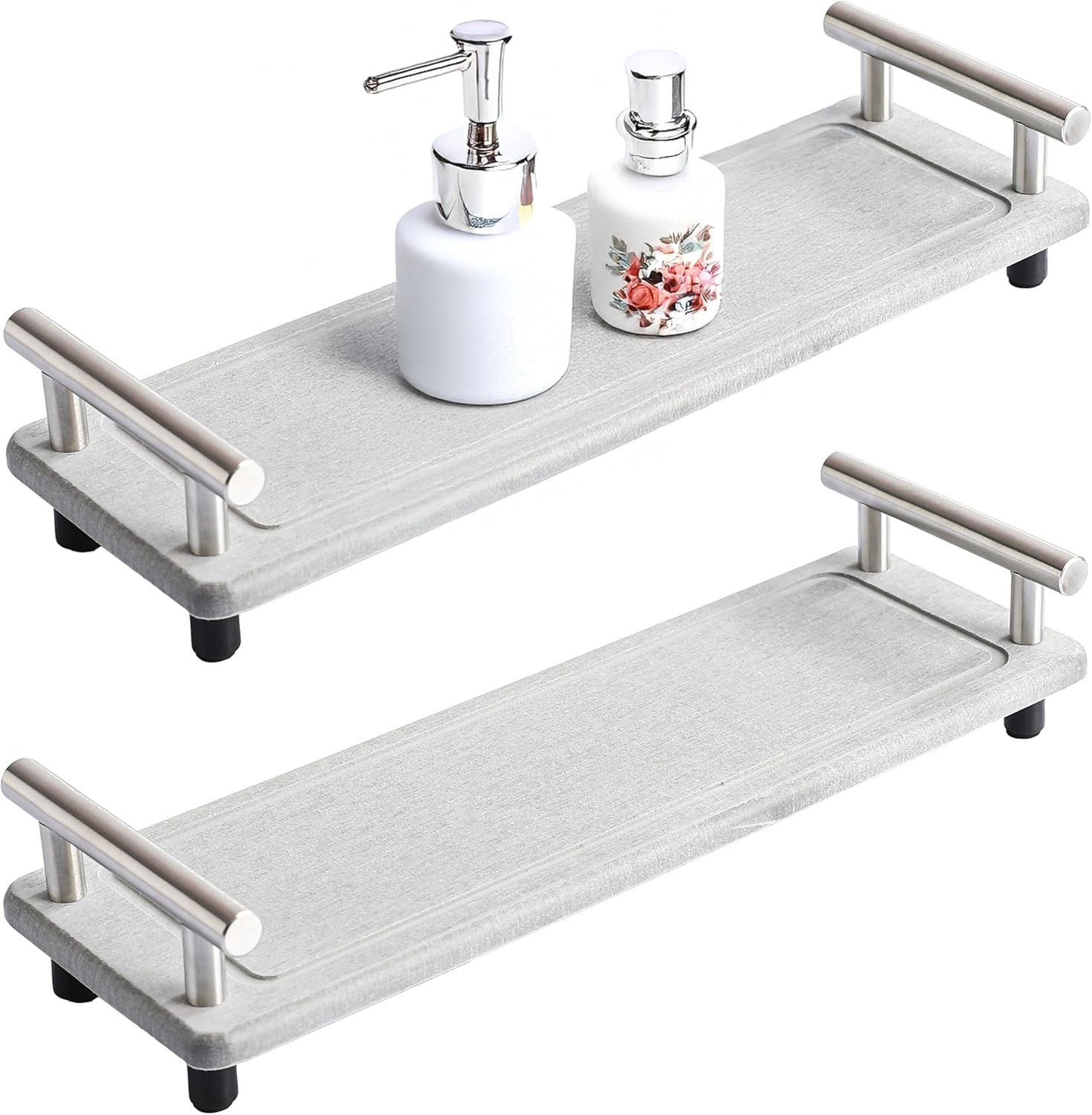 2PCS Instant Stone Drying Tray for Bathroom Kitchen, Bathroom Counter Decoration, Quick Dry Stone Sink Tray, Fast Drying Sink Caddy, Water Absorbing Sink Caddy (Light Grey & Silver Handle, Small)