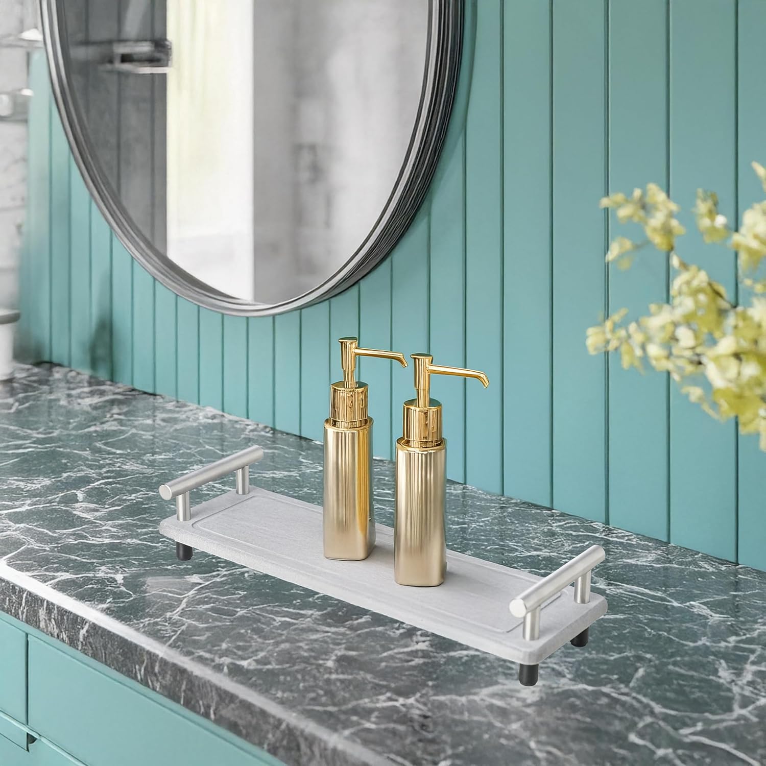 - Luxurious Handle Design: The bathroom sink tray comes with handles in silver, adding a touch of luxury while making it easy to move and carry, increasing its functionality.