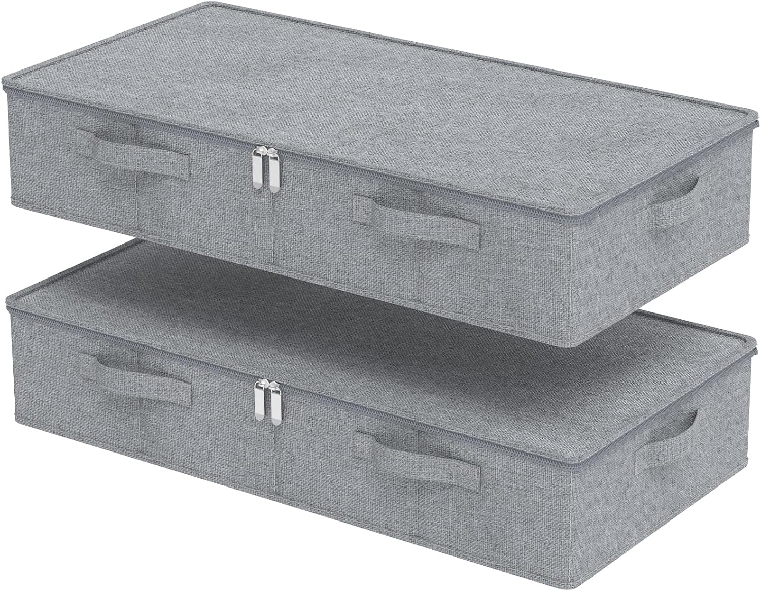 Underbed Storage Bin, Foldable Under Bed Flat Baskets Organizer, Container boxes with Lid for Organizing Clothes, Sheets, Blankets, Comforter, 31.4x15.7x5.9in, Grey, 2 Pack