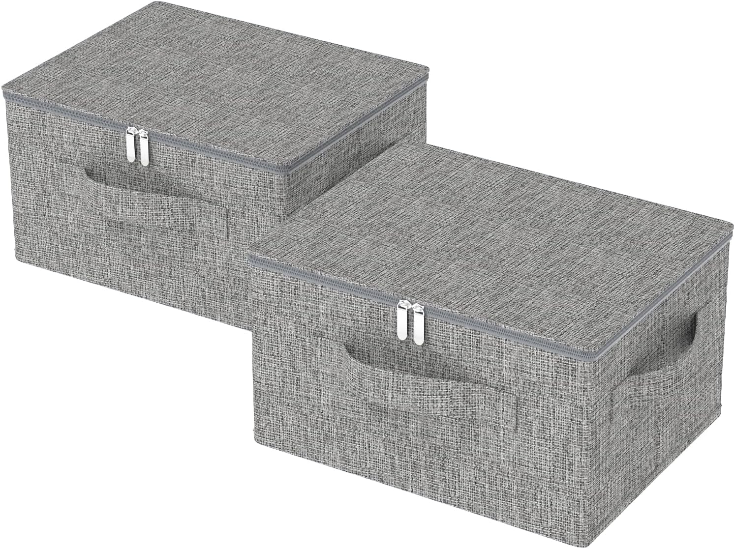 Underbed Storage Box Containers with Lid, Foldable Blanket Baskets, Home Underbed Organization for Organizing Clothes, Shoes, Pillows, 17.7x13.7x9.8Inches, Grey, 2 Pack