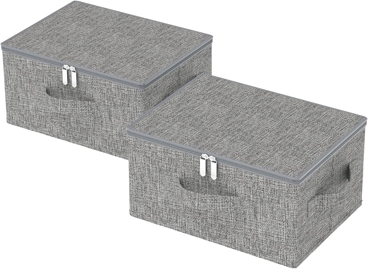 Underbed Storage Basket with Lid, Foldable Bed Sheet Boxes, Home Cube Bins for Organizing Clothes, Shoes, Blankets, Pillows, 15.7x11.8x7.8Inches, Grey, 2 Pack