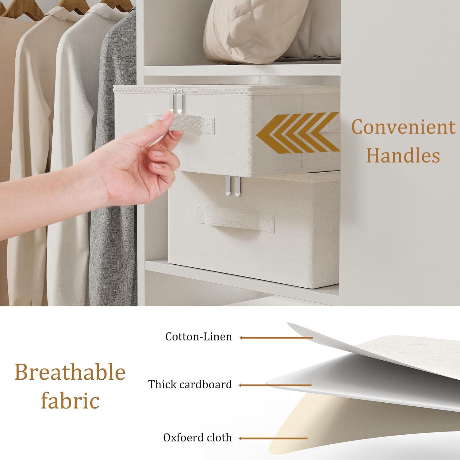 - Material: Cotton linen fabric, breathable, durable and sturdy, hardboard support on both sides of the storage compartment, not easy to deform or broken